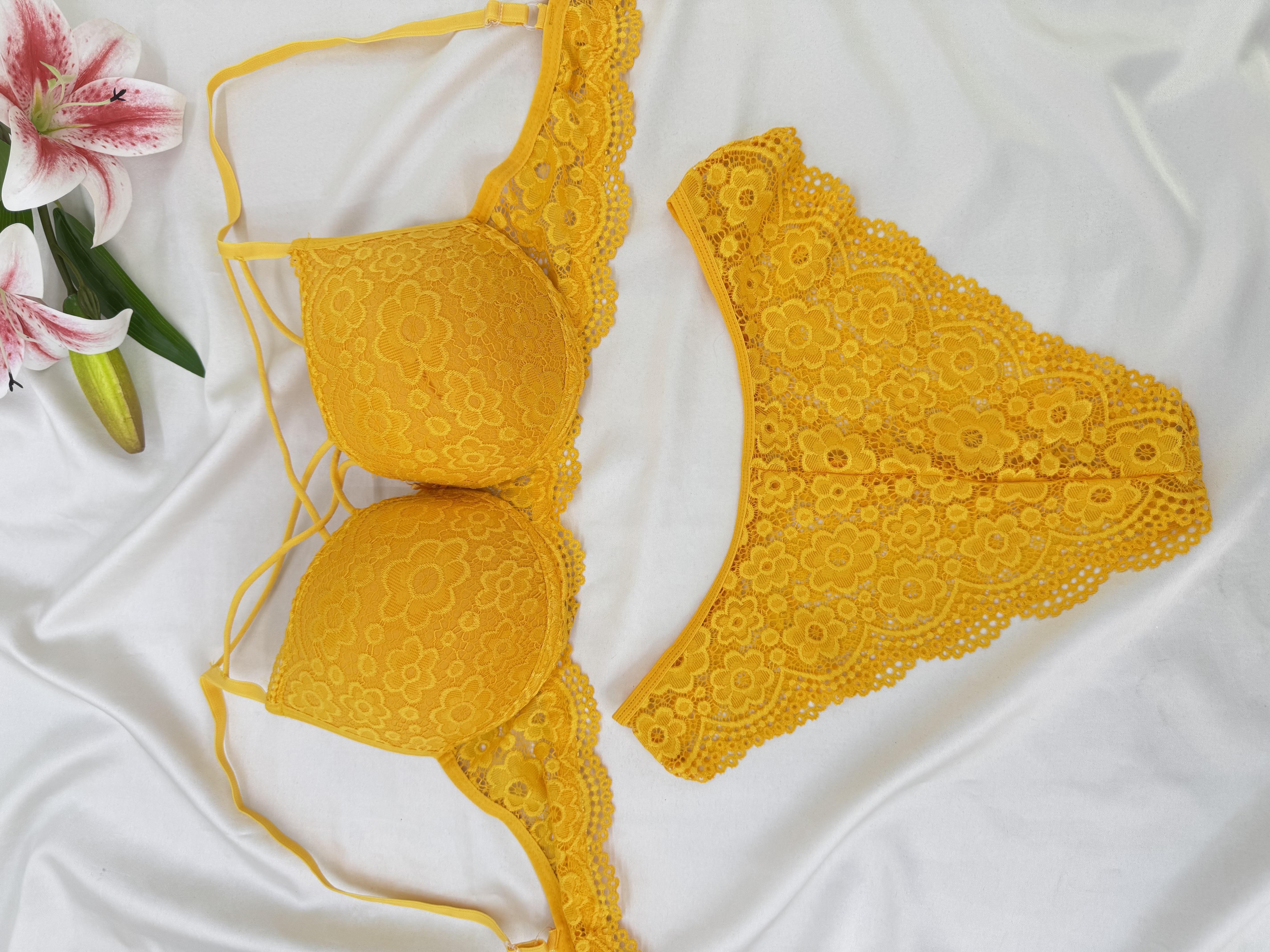 Ç2154 DESTEKLİ ÇAPRAZ DANTELLİ SÜTYEN TAKIMI-SARI (Ç2154)