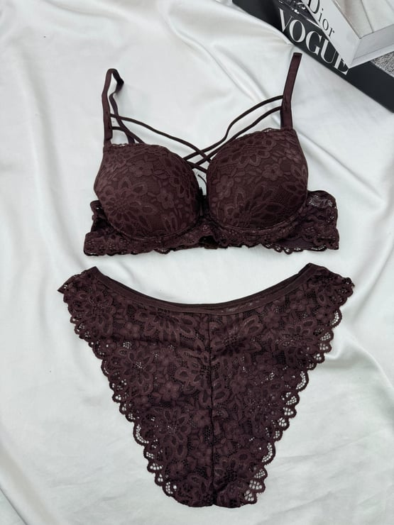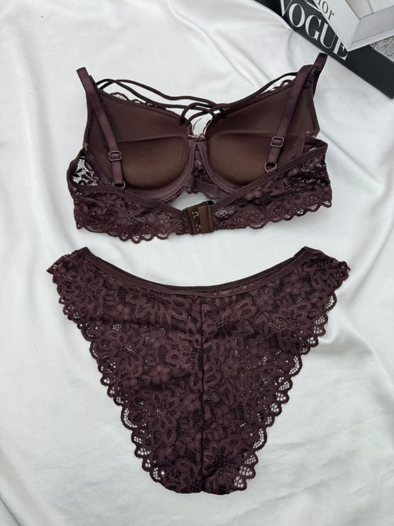 Ç2225 - DESTEKLİ DANTELLİ ÇAPRAZ İPLİ SÜTYEN TAKIMI - KAHVE (Ç2225)