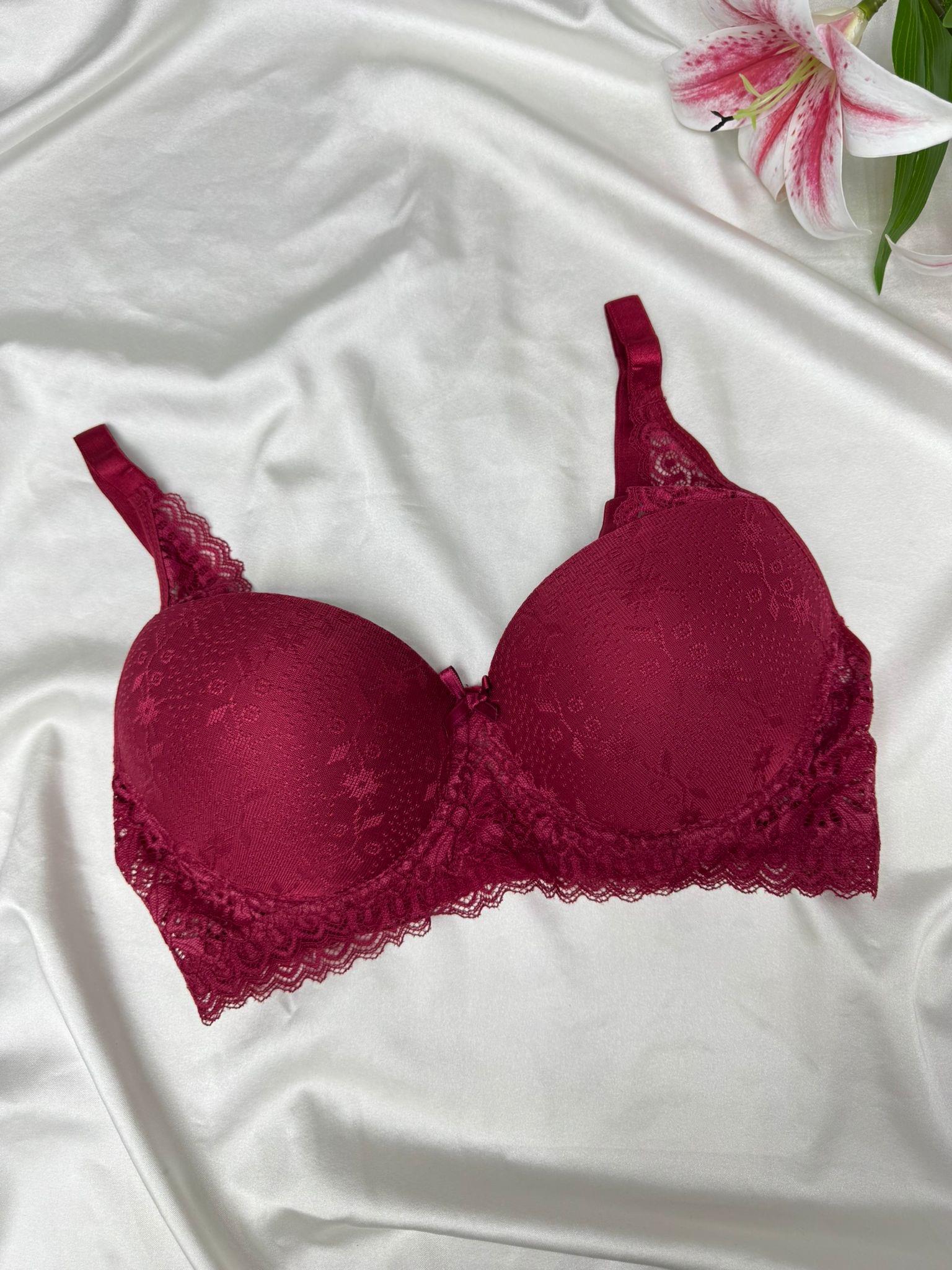 Ç242 DOLGUSUZ Dantelli Desenli Model Sütyen- BORDO (Ç242)