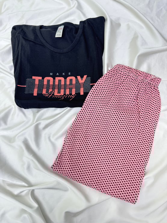 Ç2932 - KISA KOLLU TODAY PİAJAMA TAKIMI - SİYAH (Ç2932)