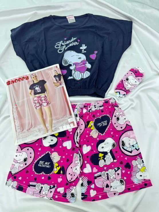 ç3014 - viskon kumaş snoopy crop takım - siyah (ç3014)