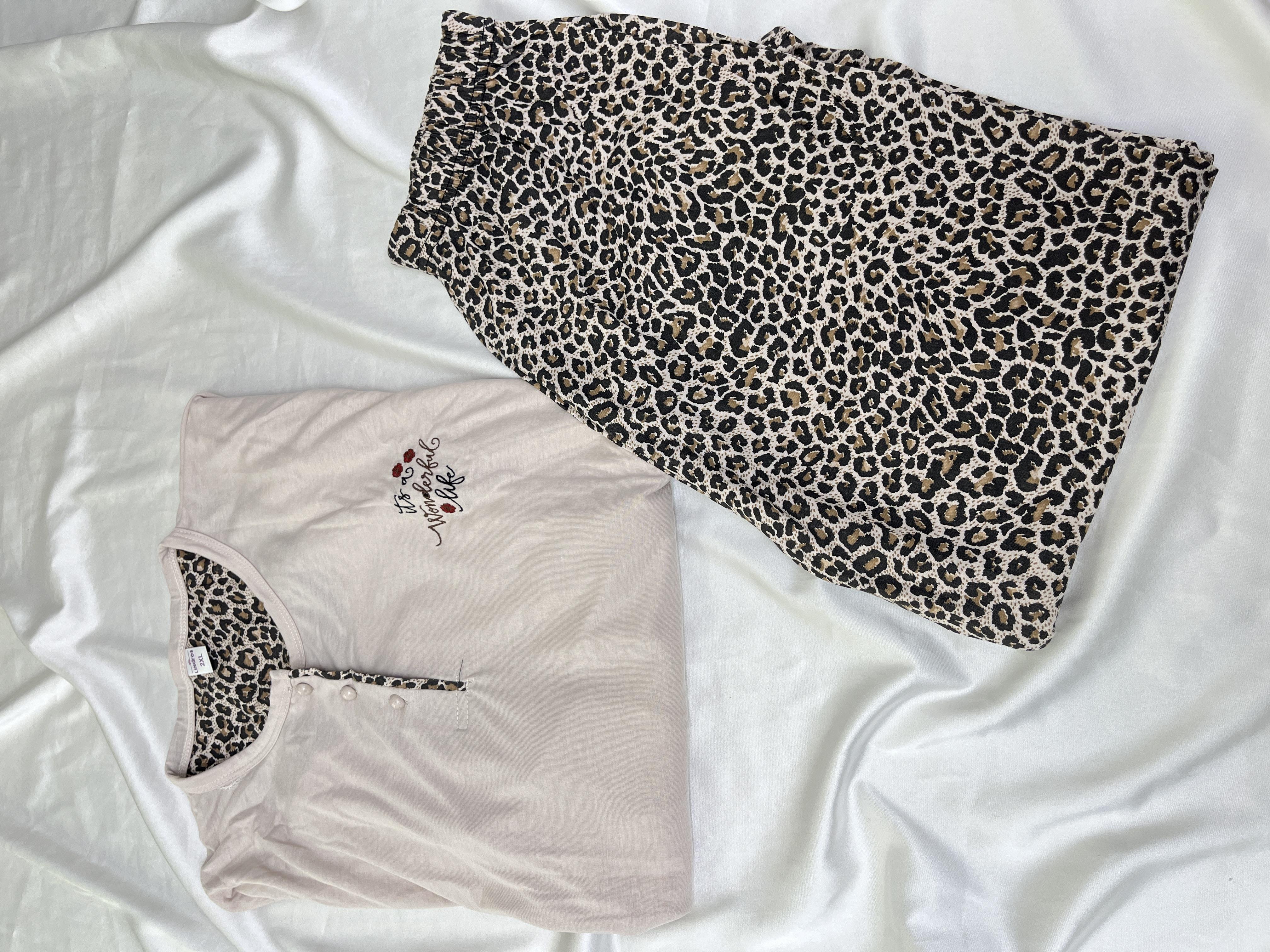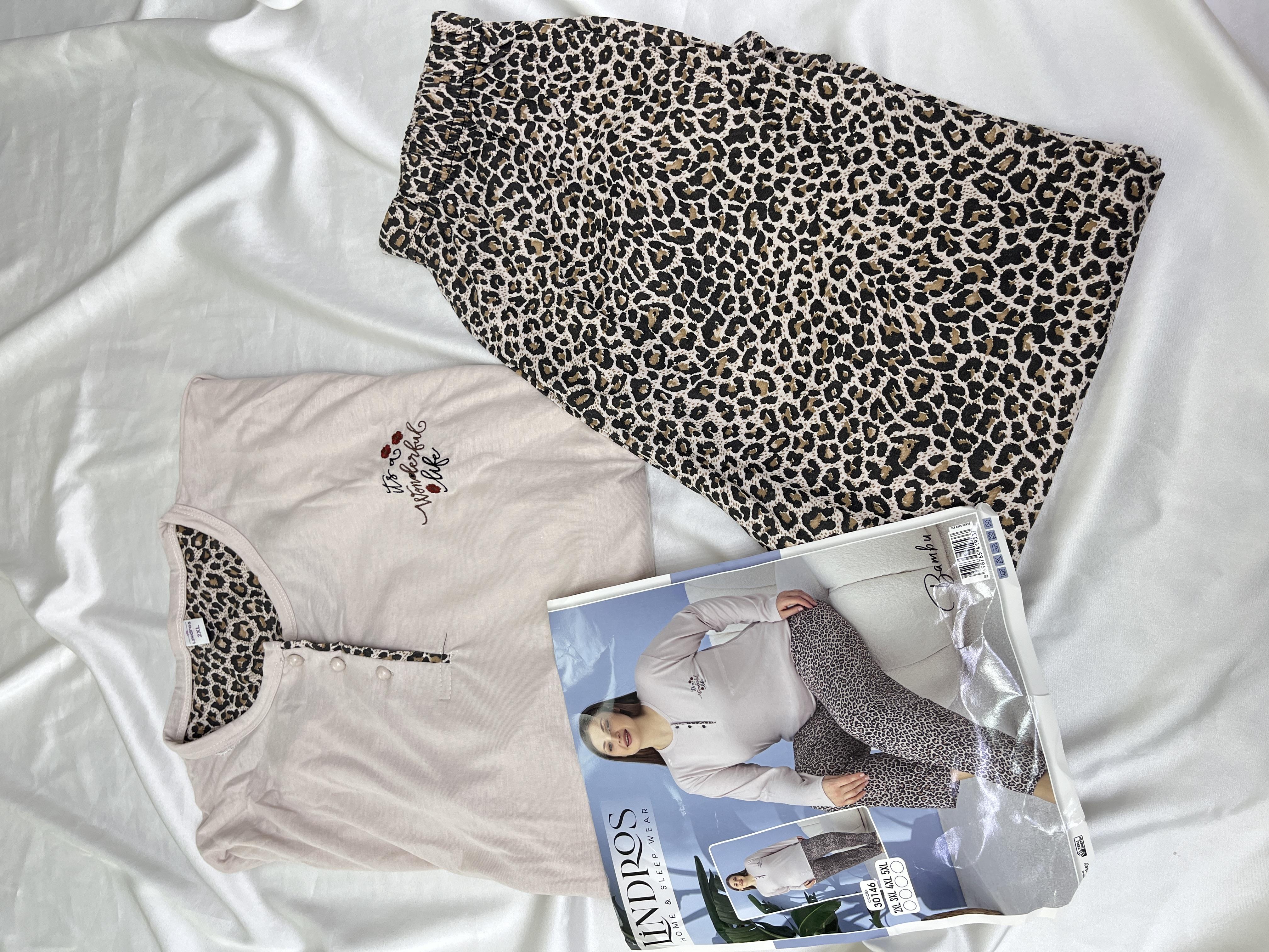 ç30146 -büyük beden kısa kollu bambu leoparlı pijama takımı (ç30146)