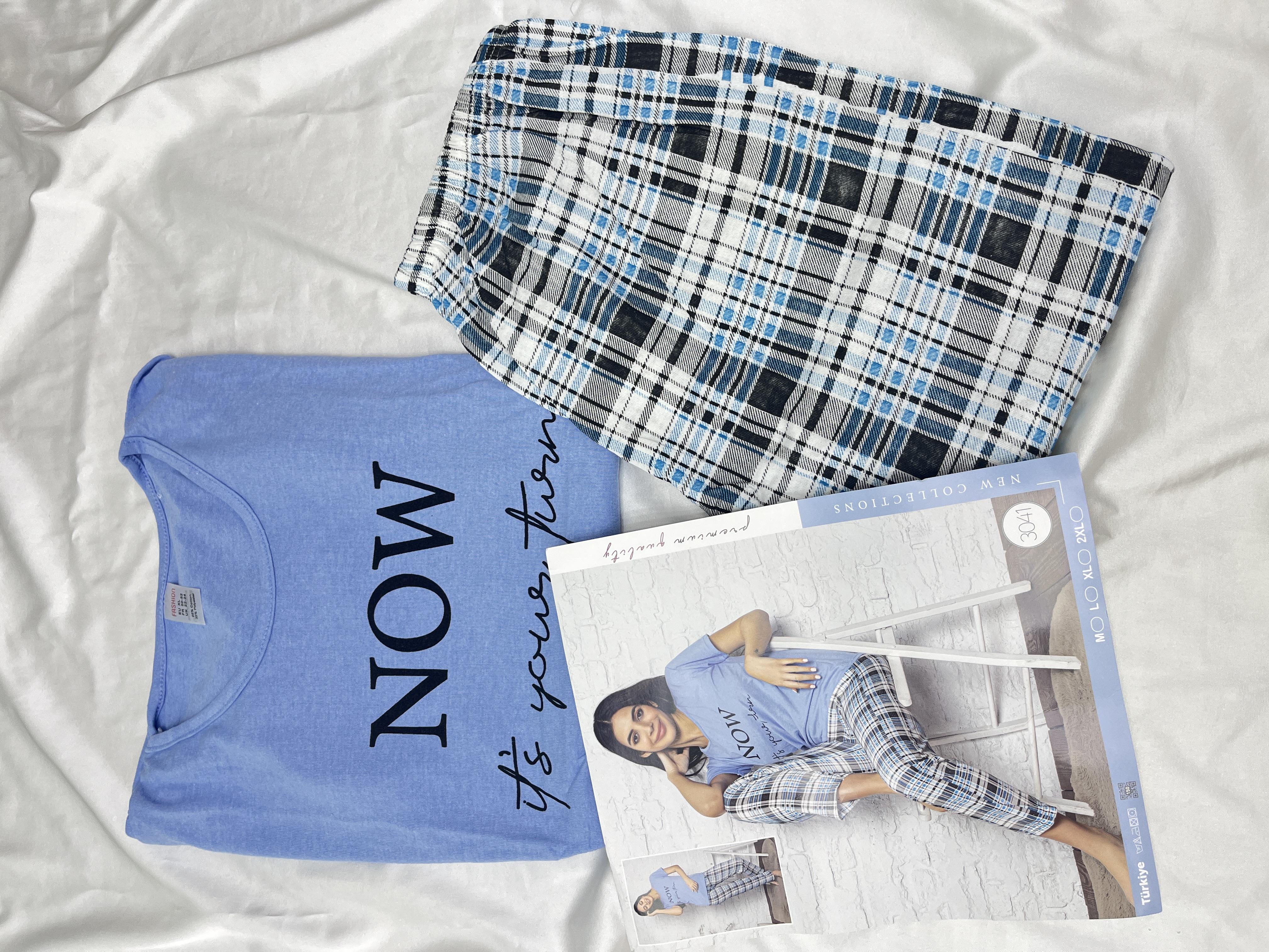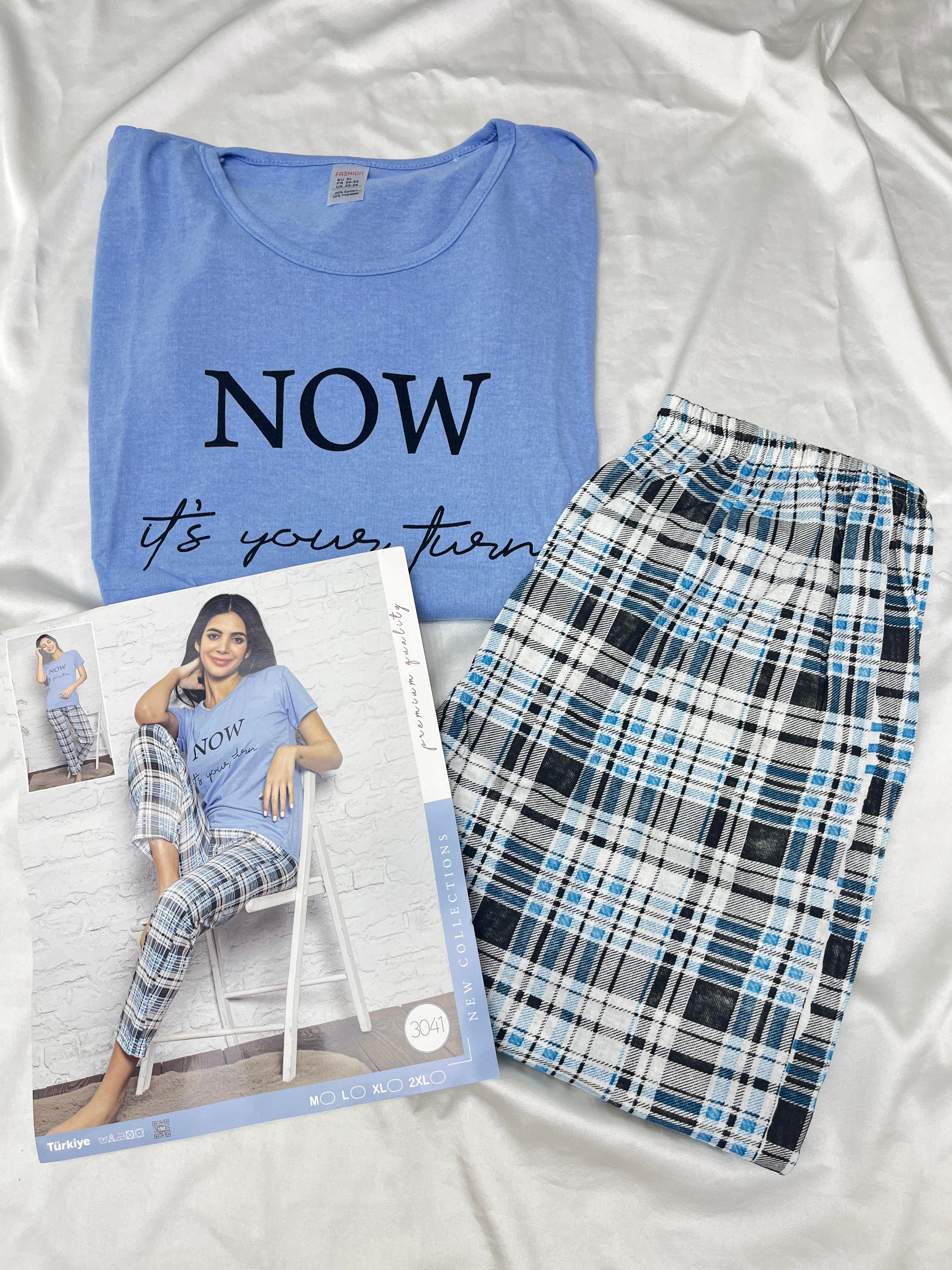 Ç3041- KISA KOLLU NOW PİJAMA TAKIMI - MAVİ (Ç3041)