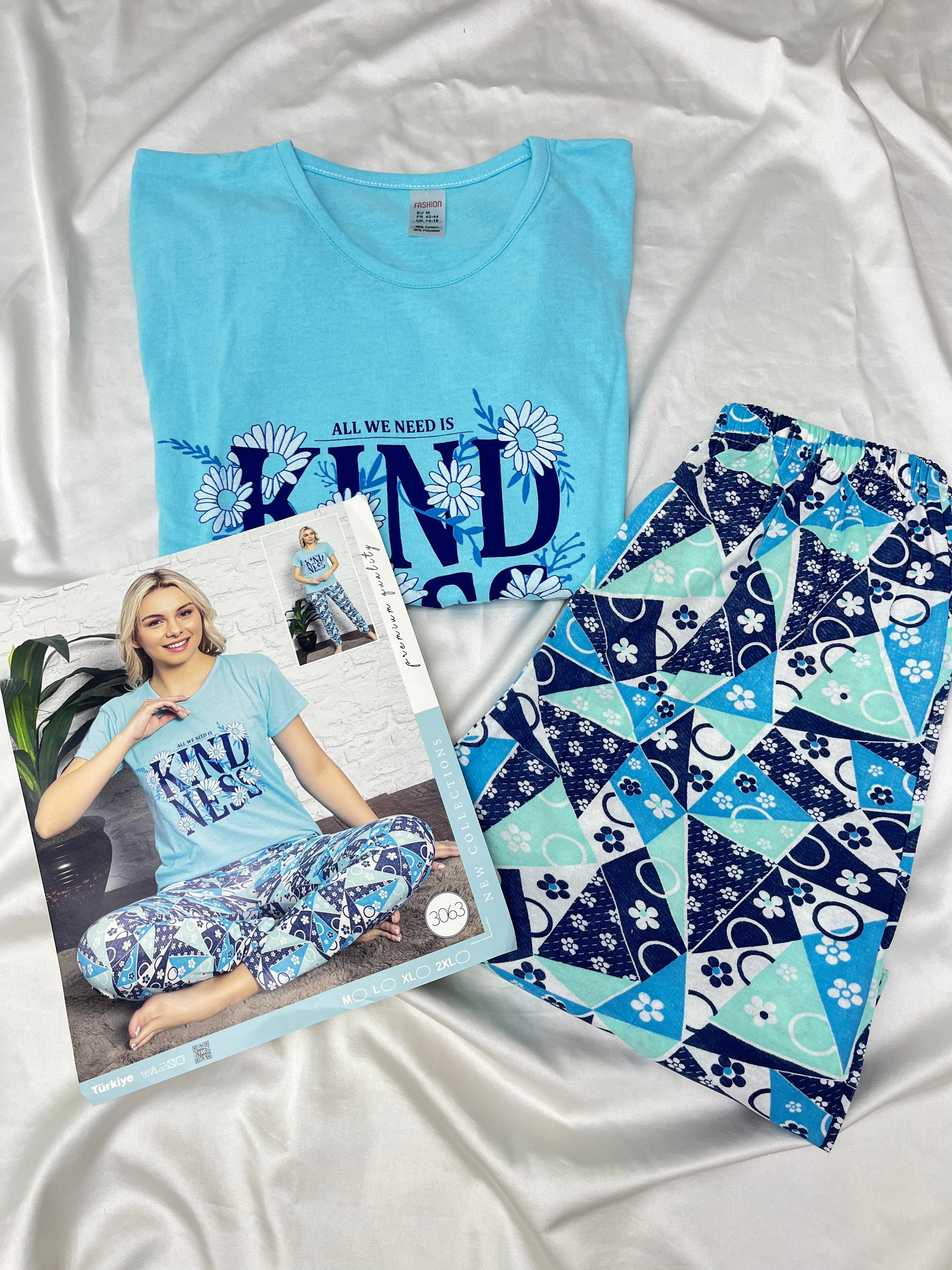 Ç3063 - KISA KOLLU KINDNESS PİJAMA TAKIMI - MAVİ (Ç3063)