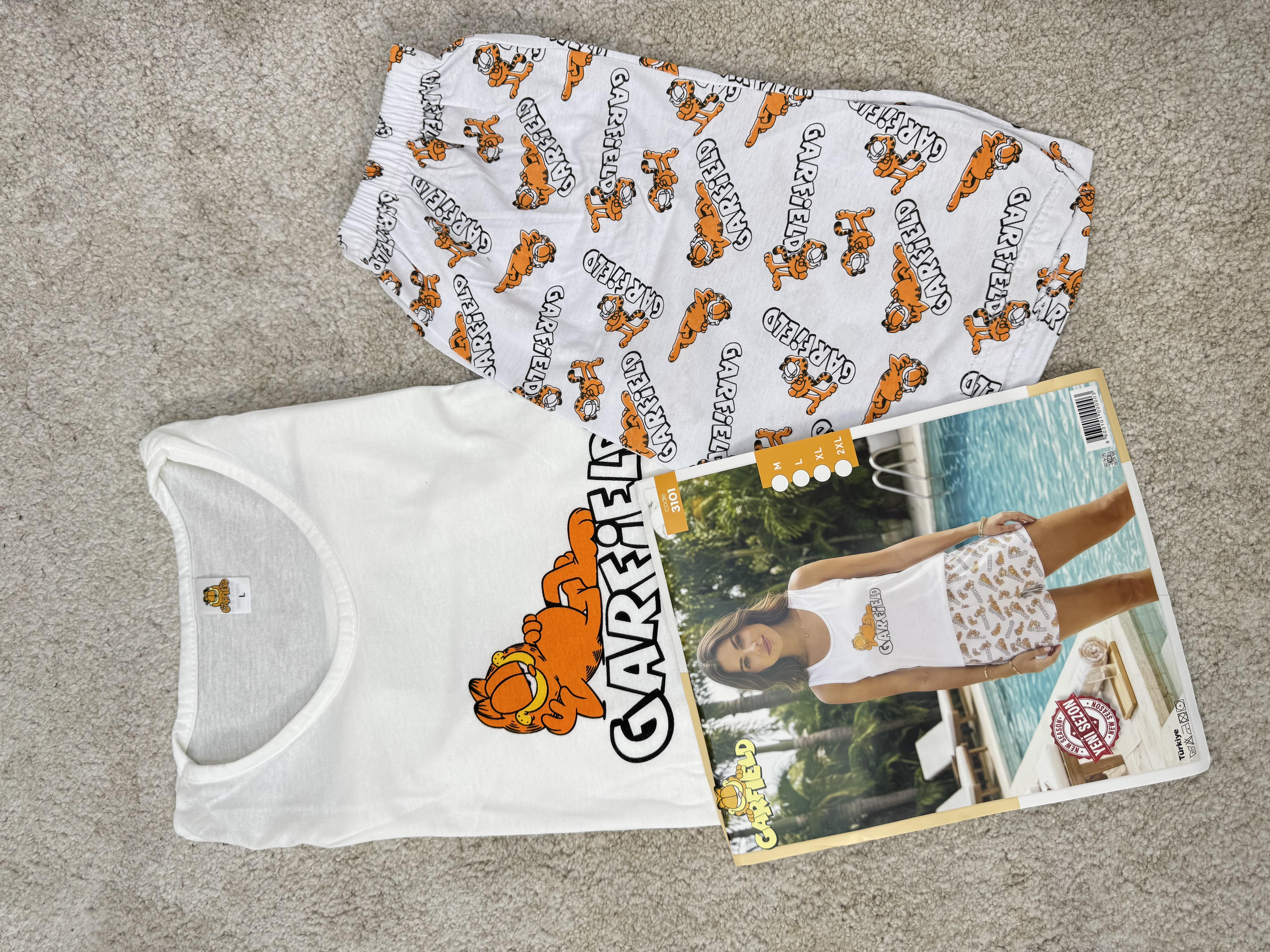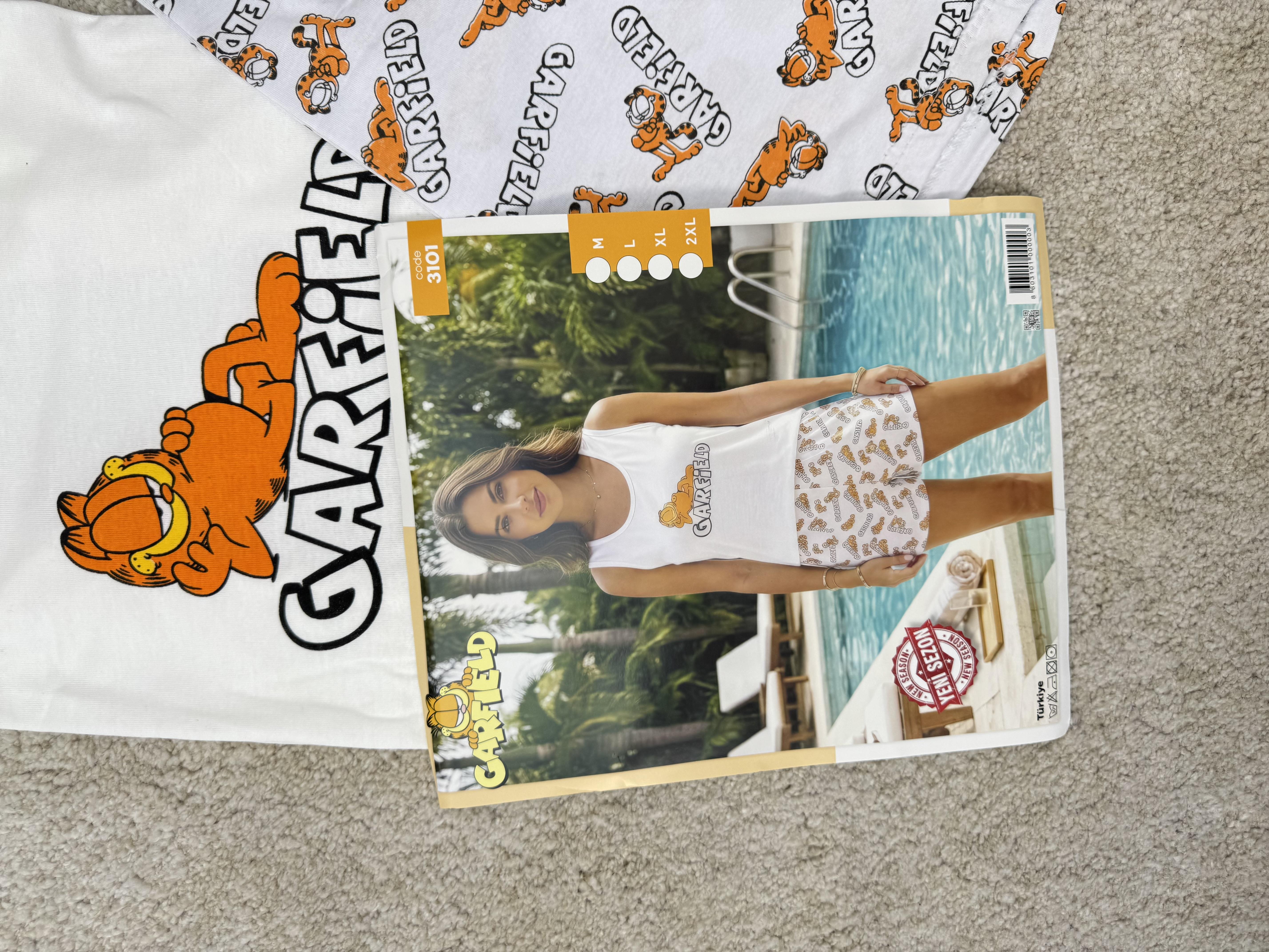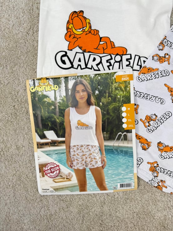 ç3101-sıfır kol garfield şortlu pijama takımı-beyaz (ç3101)