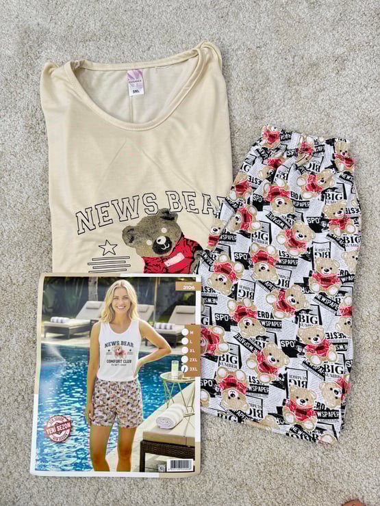 ç3106-sıfır kol şortlu ayıcıklı pijama takımı-beyaz (ç3106)