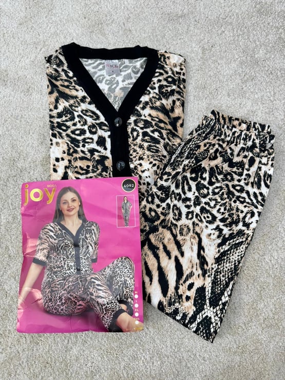 ç4092-milan kumaş kısa kollu pijama takımı -leopar (ç4092)