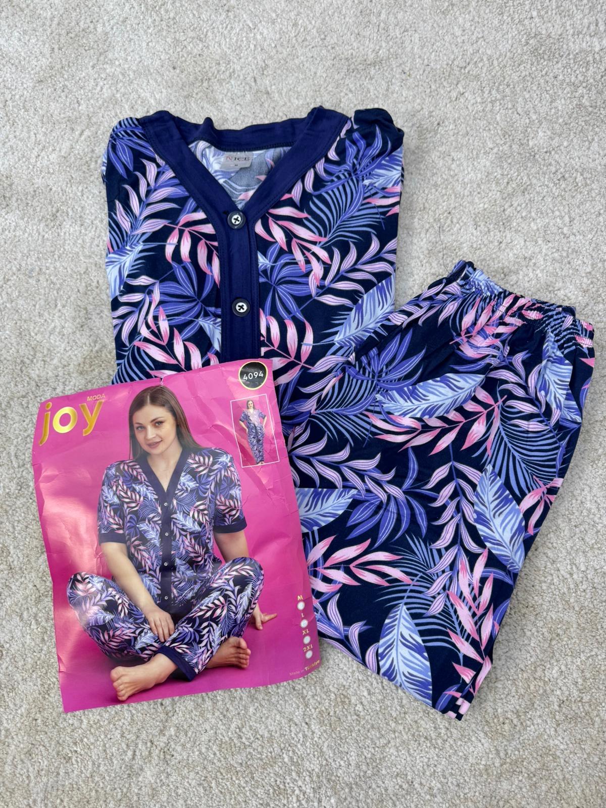 ç4094-milan kumaş kısa kollu desenli pijama takımı -lacivert (ç4094)