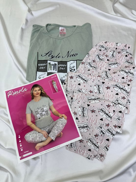Ç4113 - KISA KOLLU STYLE PİJAMA TAKIMI - HAKİ (Ç4113)