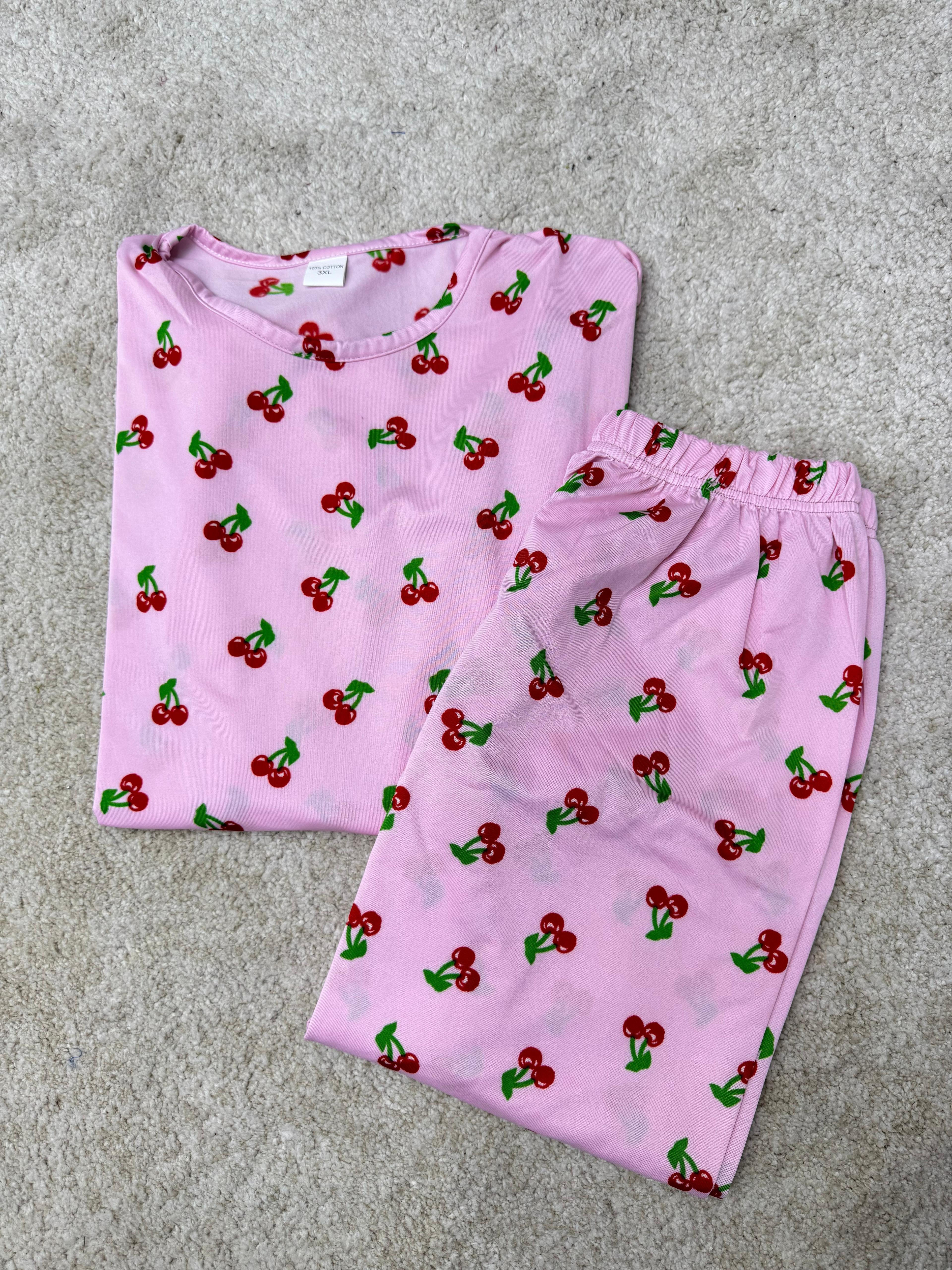 ç430-milan kumaş büyük beden uzun kol kirazlı pijama takımı-pembe (ç430)