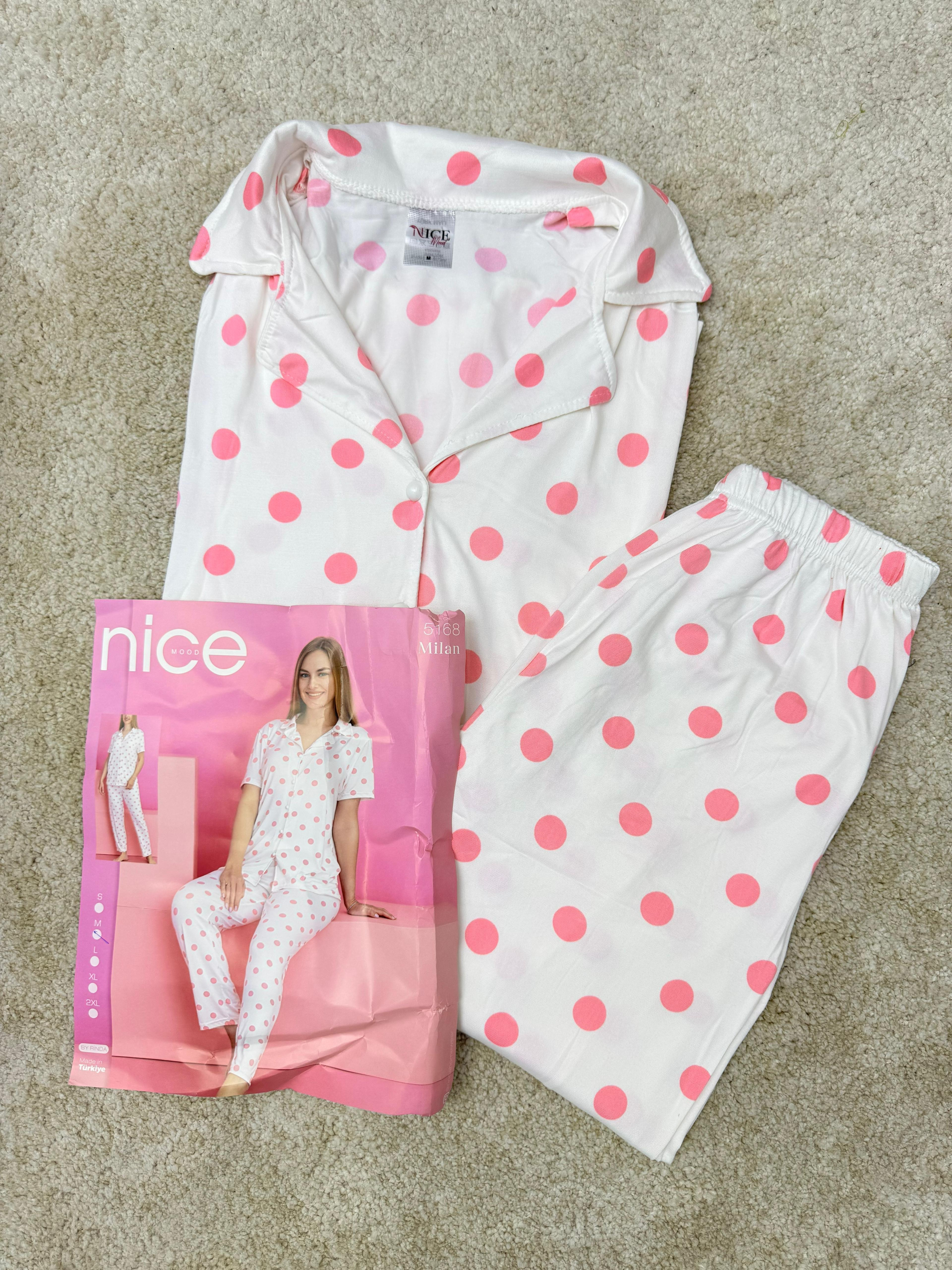 ç5168-milan kumaş gömlek yaka puantiyeli pijama takımı-beyaz (ç5168)