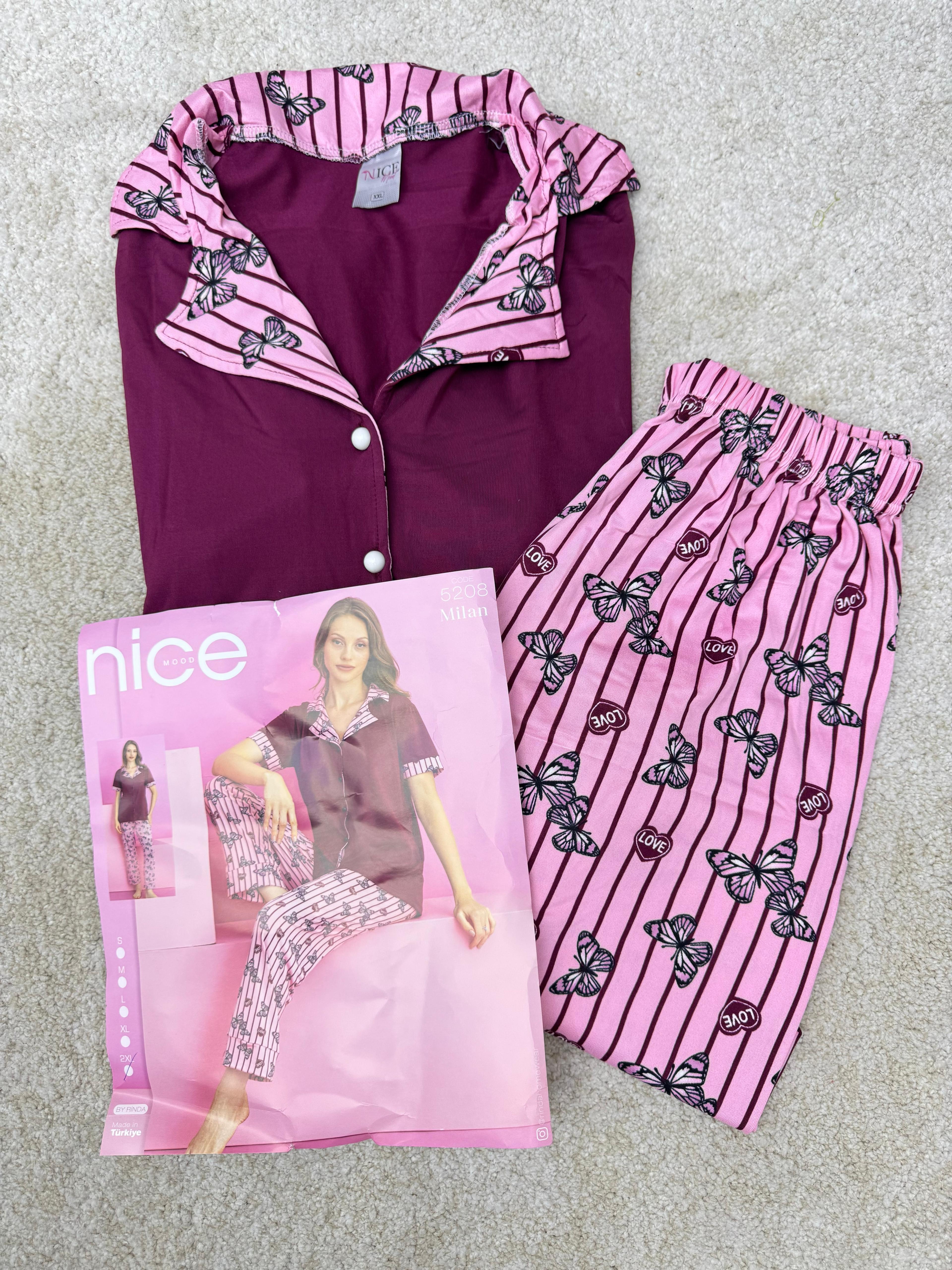 ç5208-milan kumaş gömlek yaka pijama takımı-bordo (ç5208)