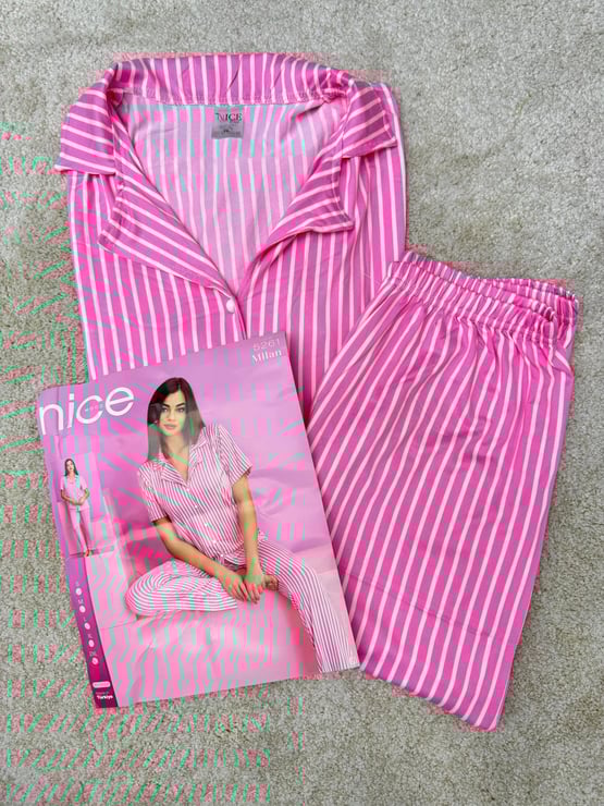 ç5261-milan kumaş gömlek yaka çizgili pijama takımı-pembe (ç5261)