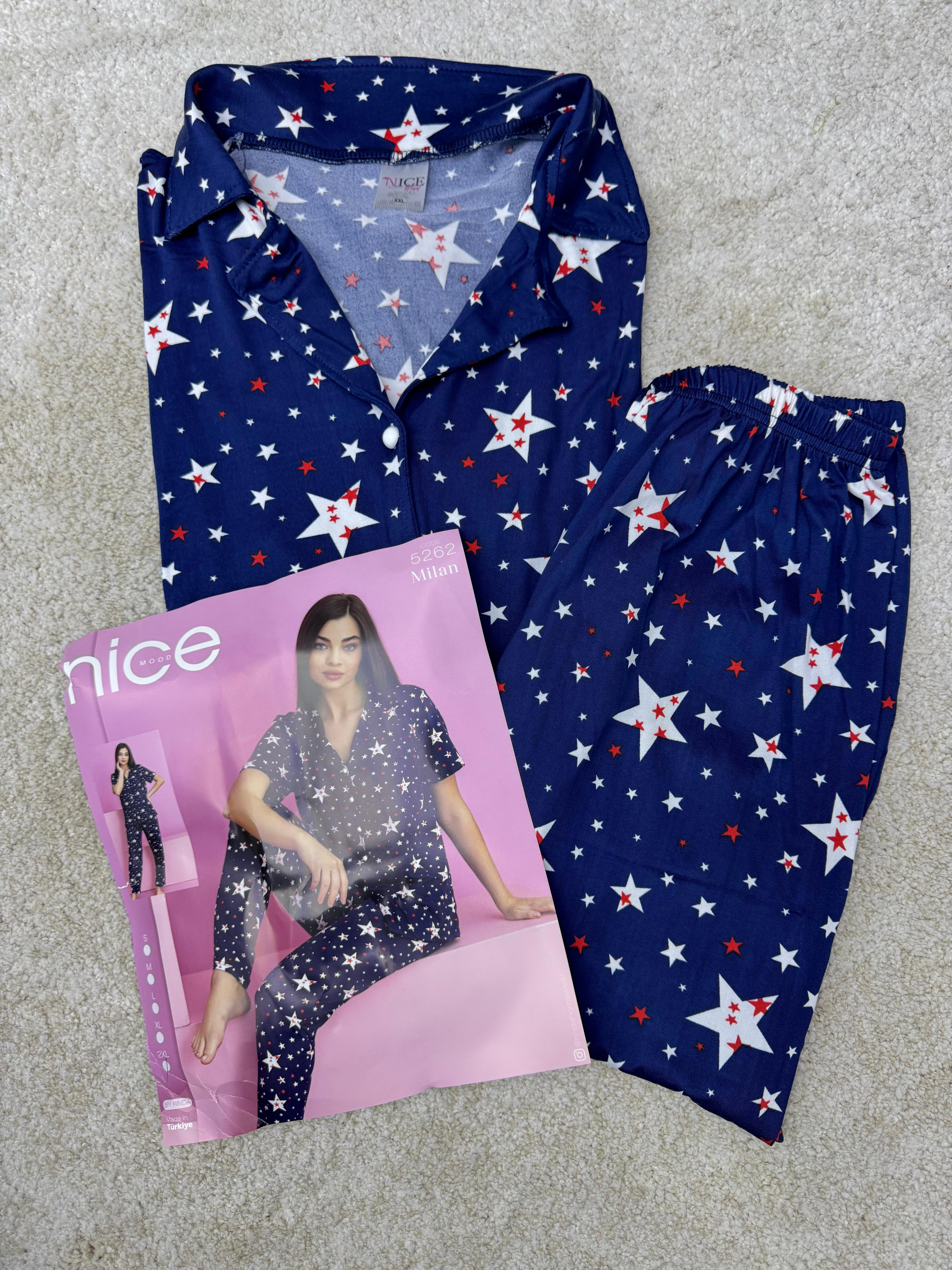 ç5262-milan kumaş gömlek yaka yıldızlı pijama takımı-lacivert (ç5262)