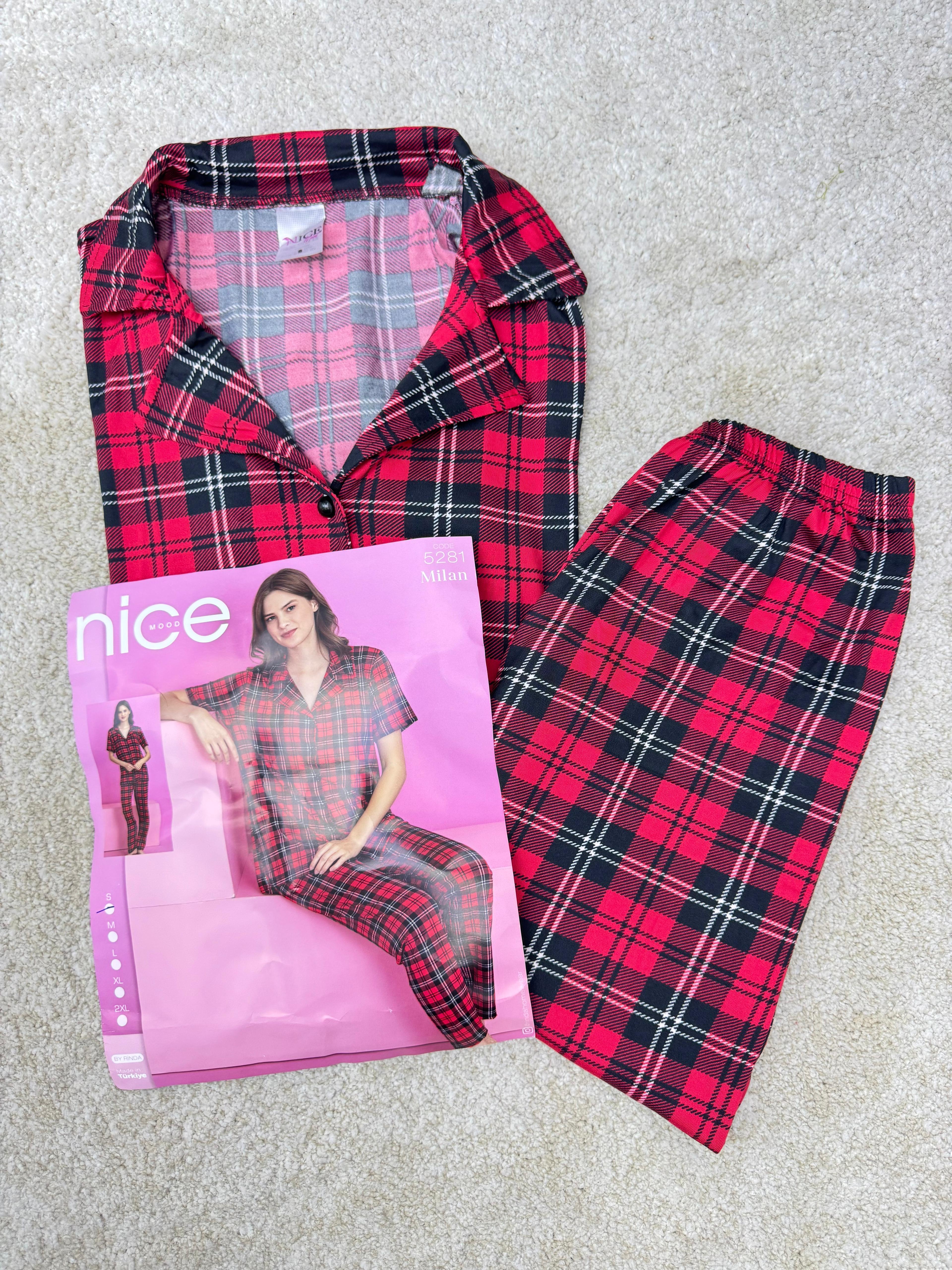 ç5281-milan kumaş gömlek yaka kareli pijama takımı-siyah (ç5281)