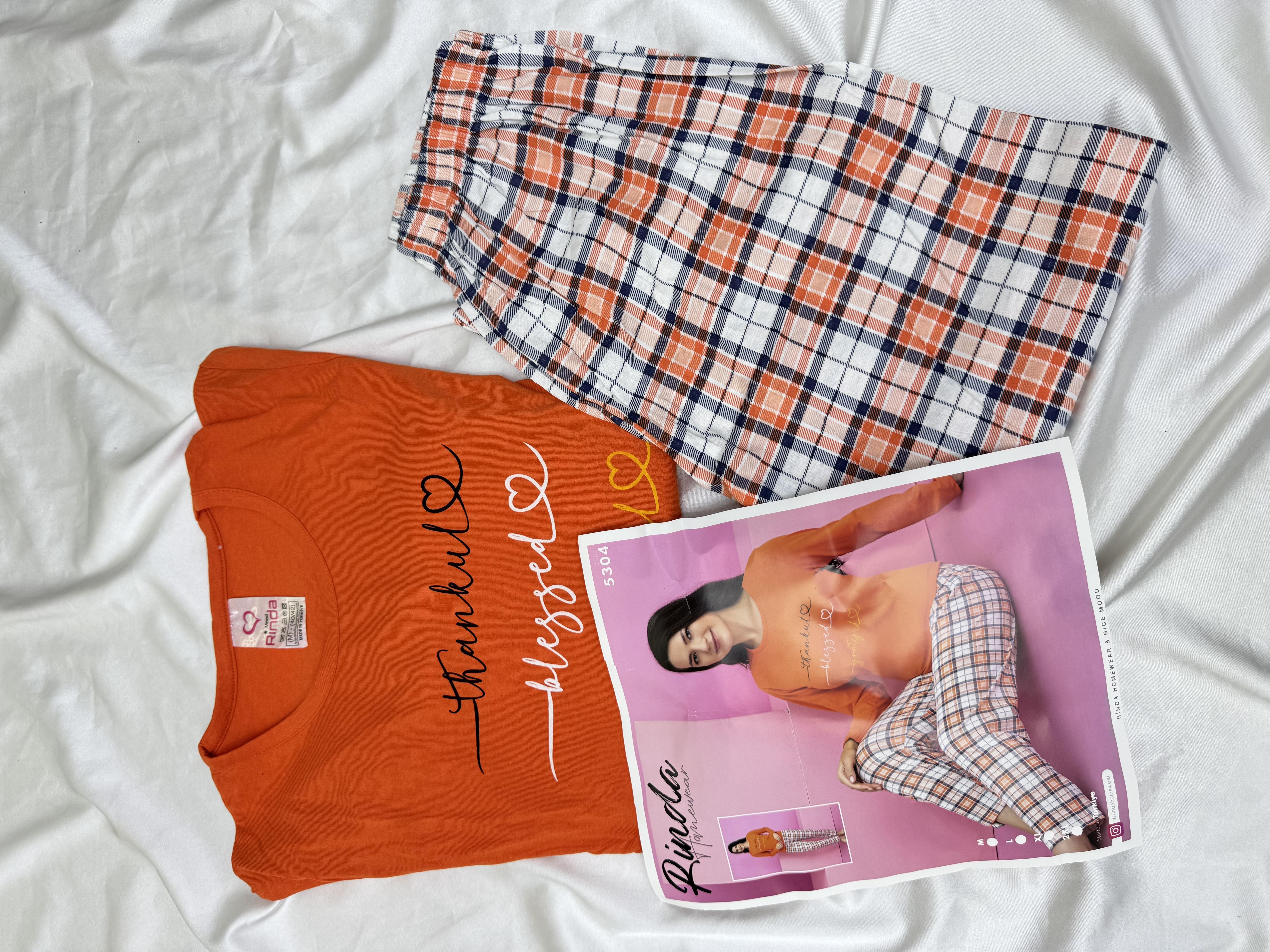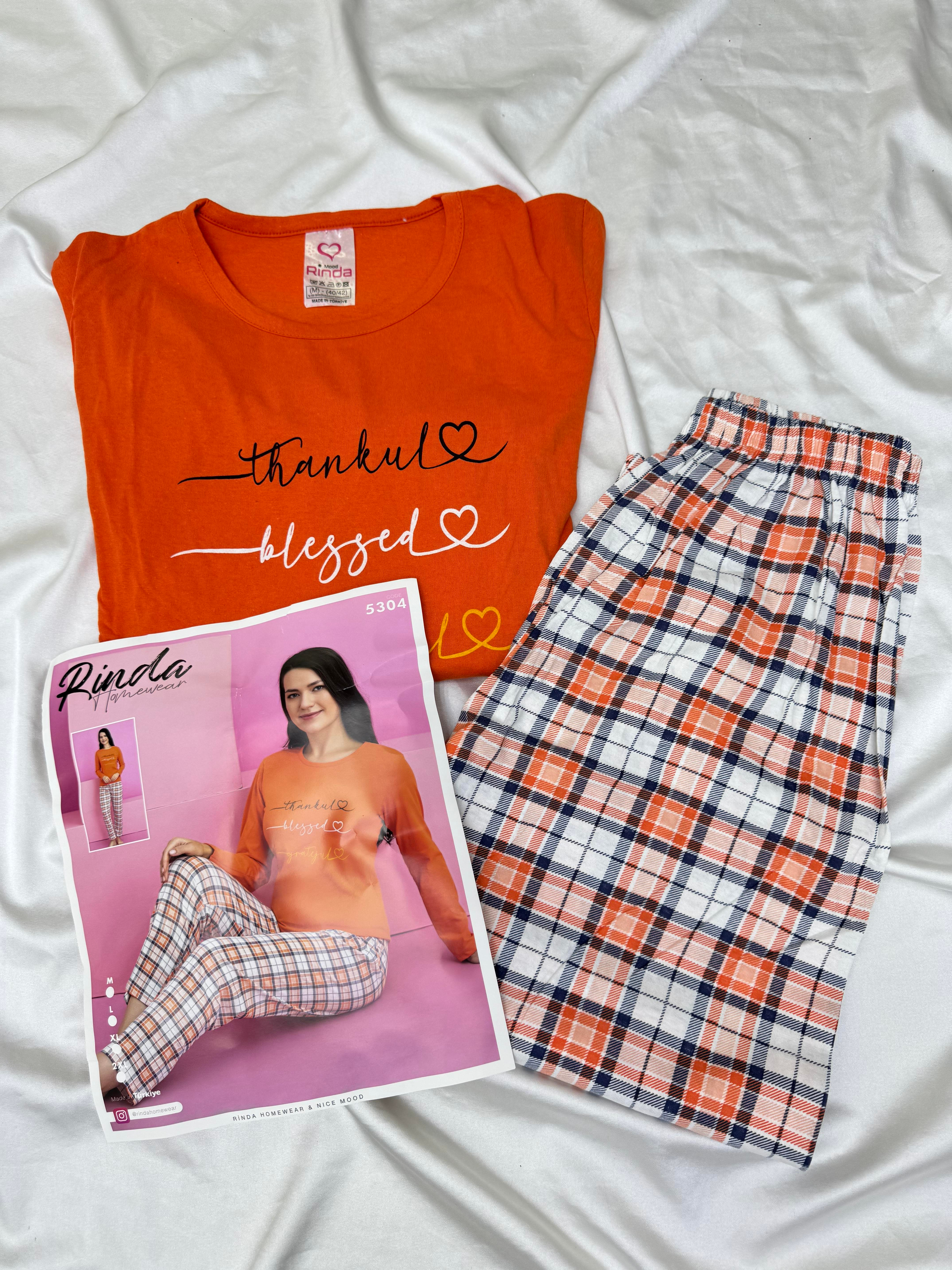 Ç5304- uzun kollu suprem pijama takımı - turuncu (Ç5304)