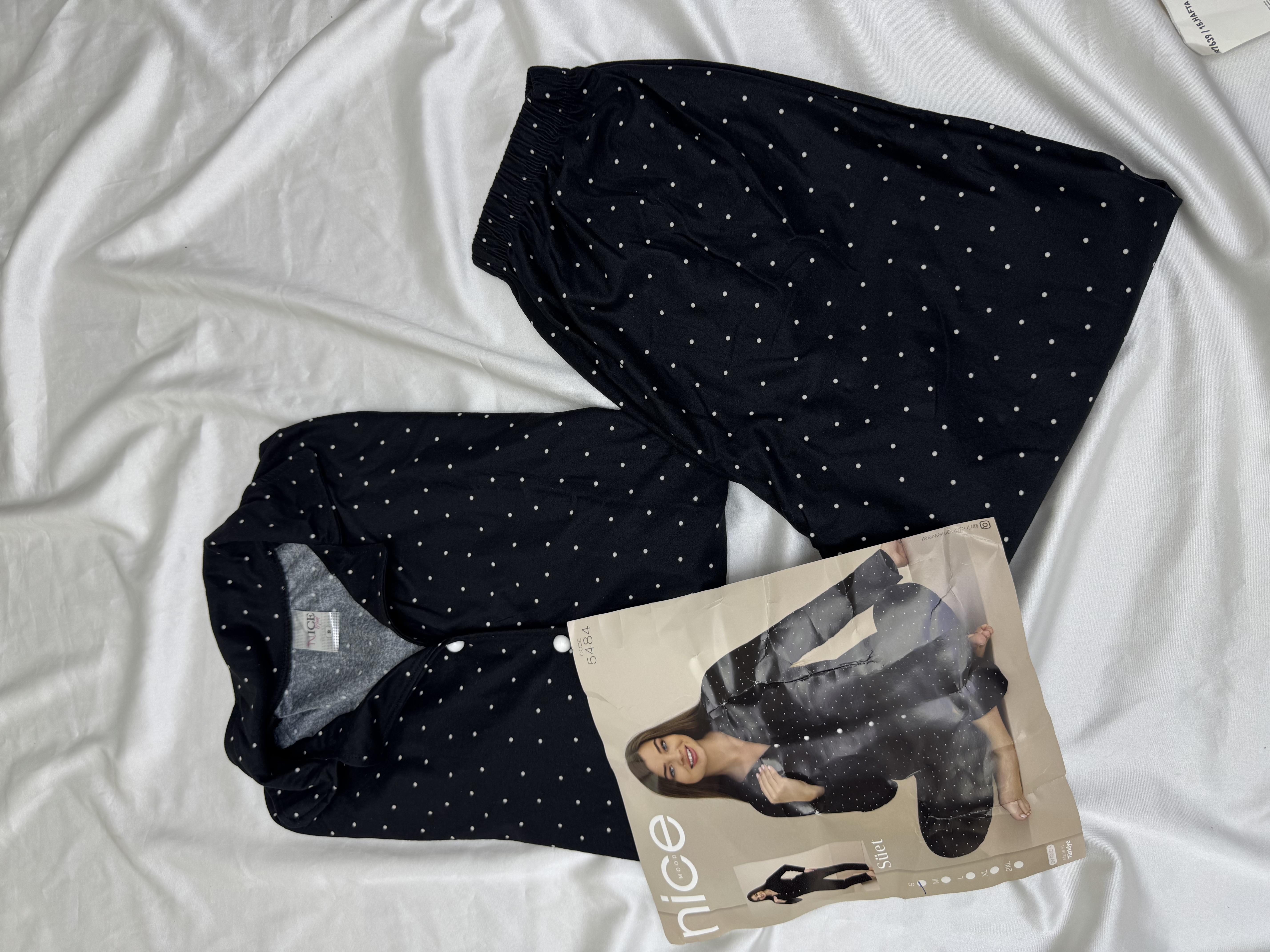 ç5484 - süet kumaş dügmeli puantiyeli pijama takımı - siyah (ç5484)
