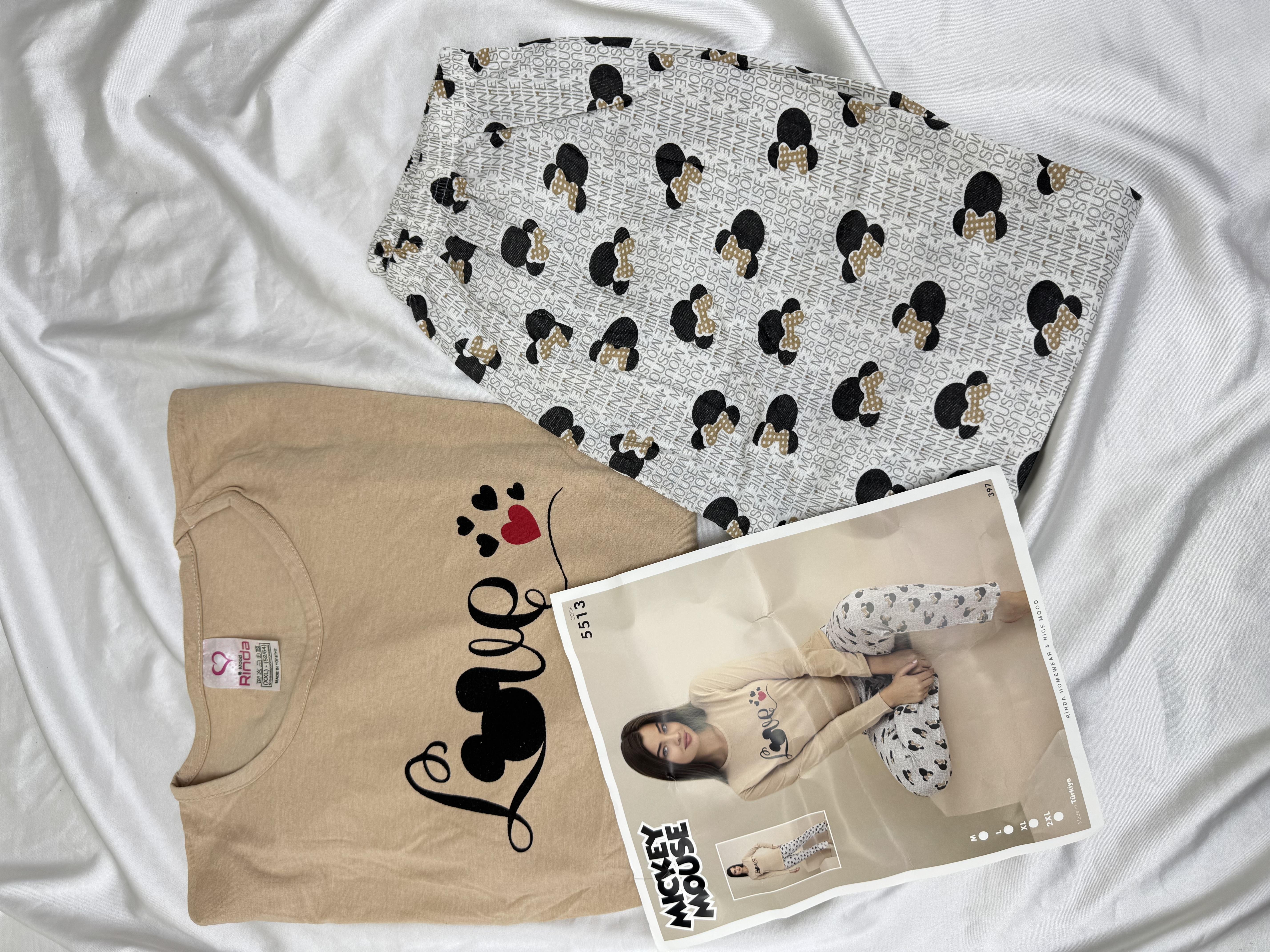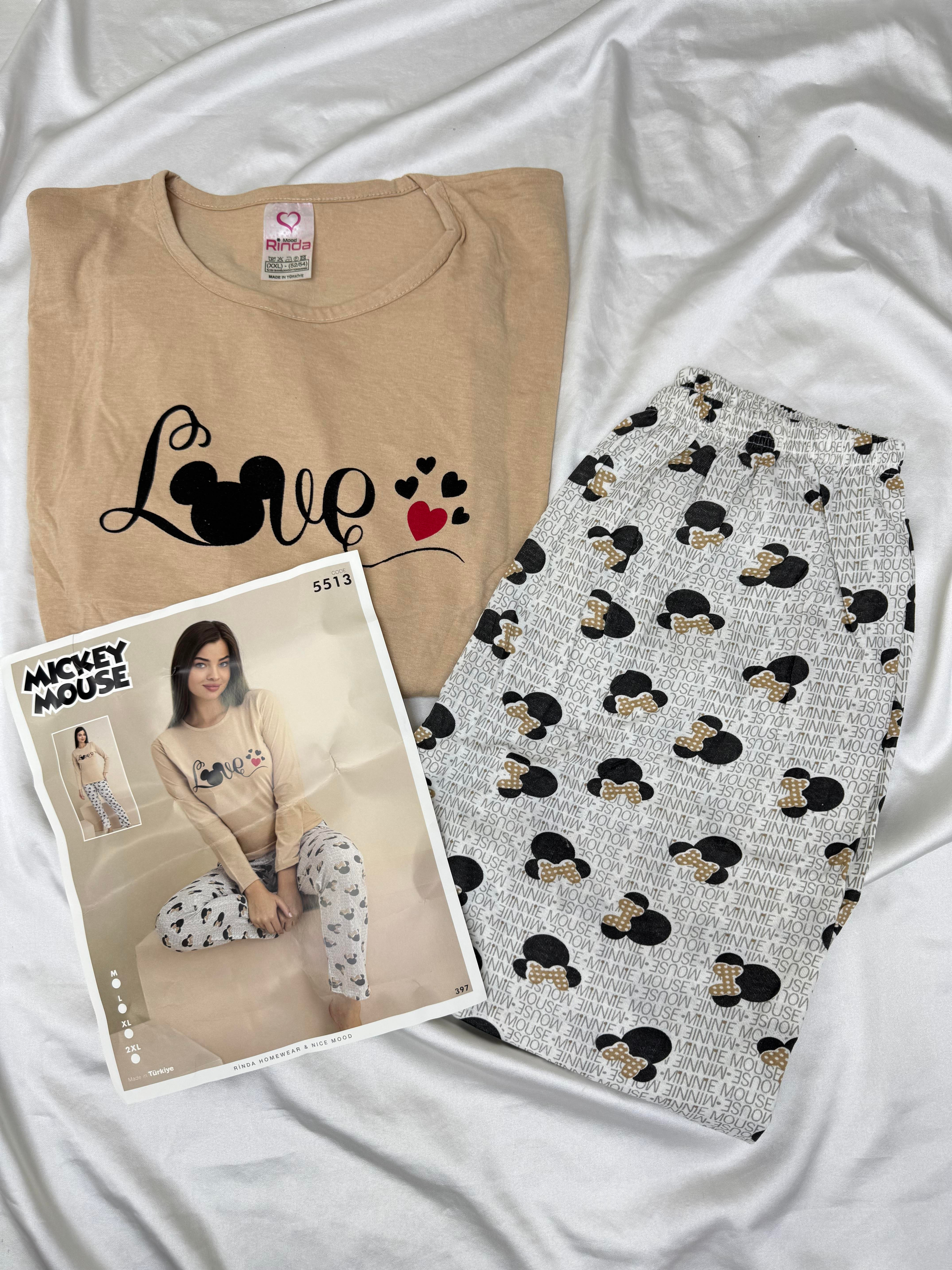 Ç5513- uzun kollu suprem mickie mouse pijama takımı - kahve (Ç5513)