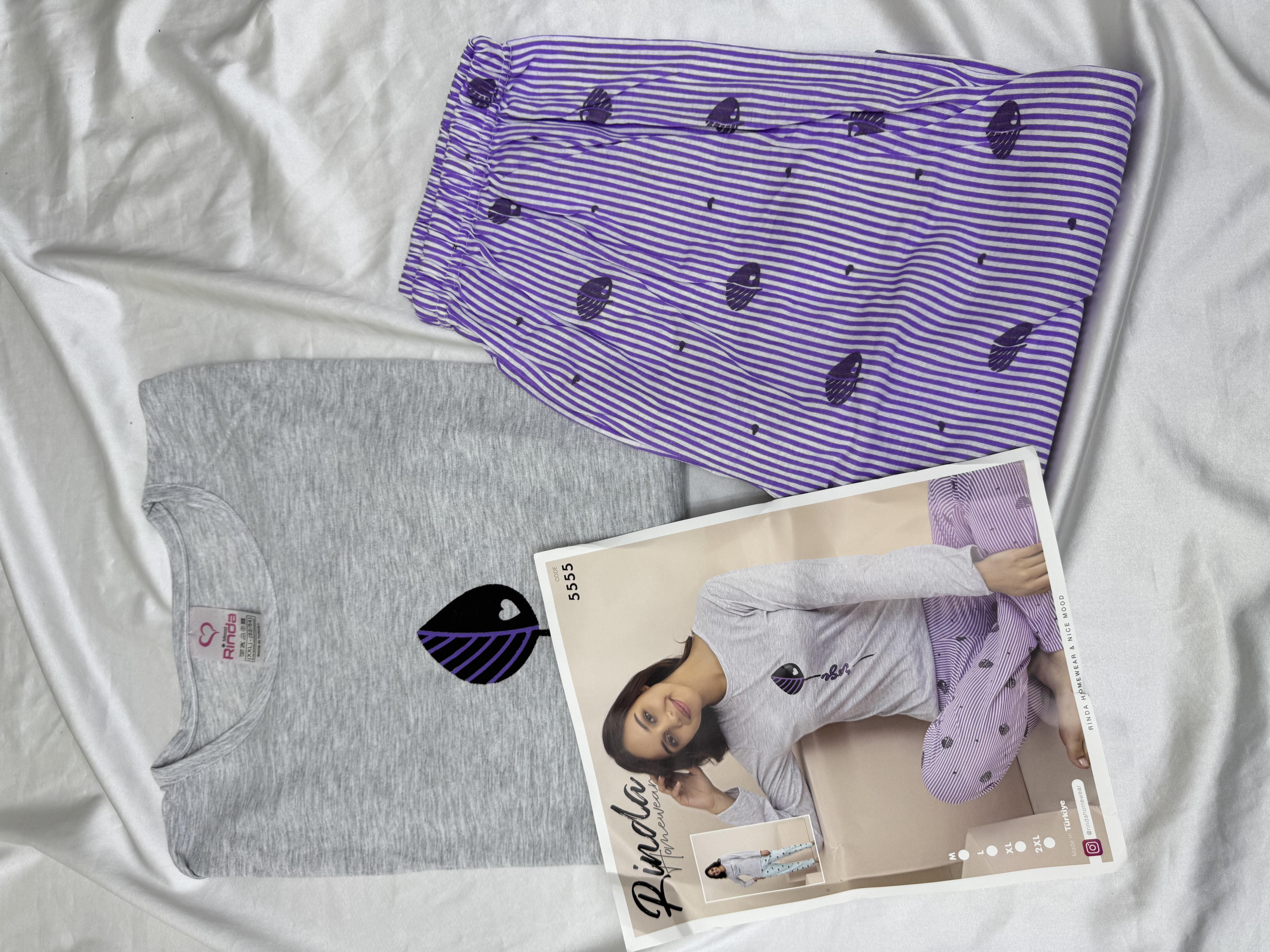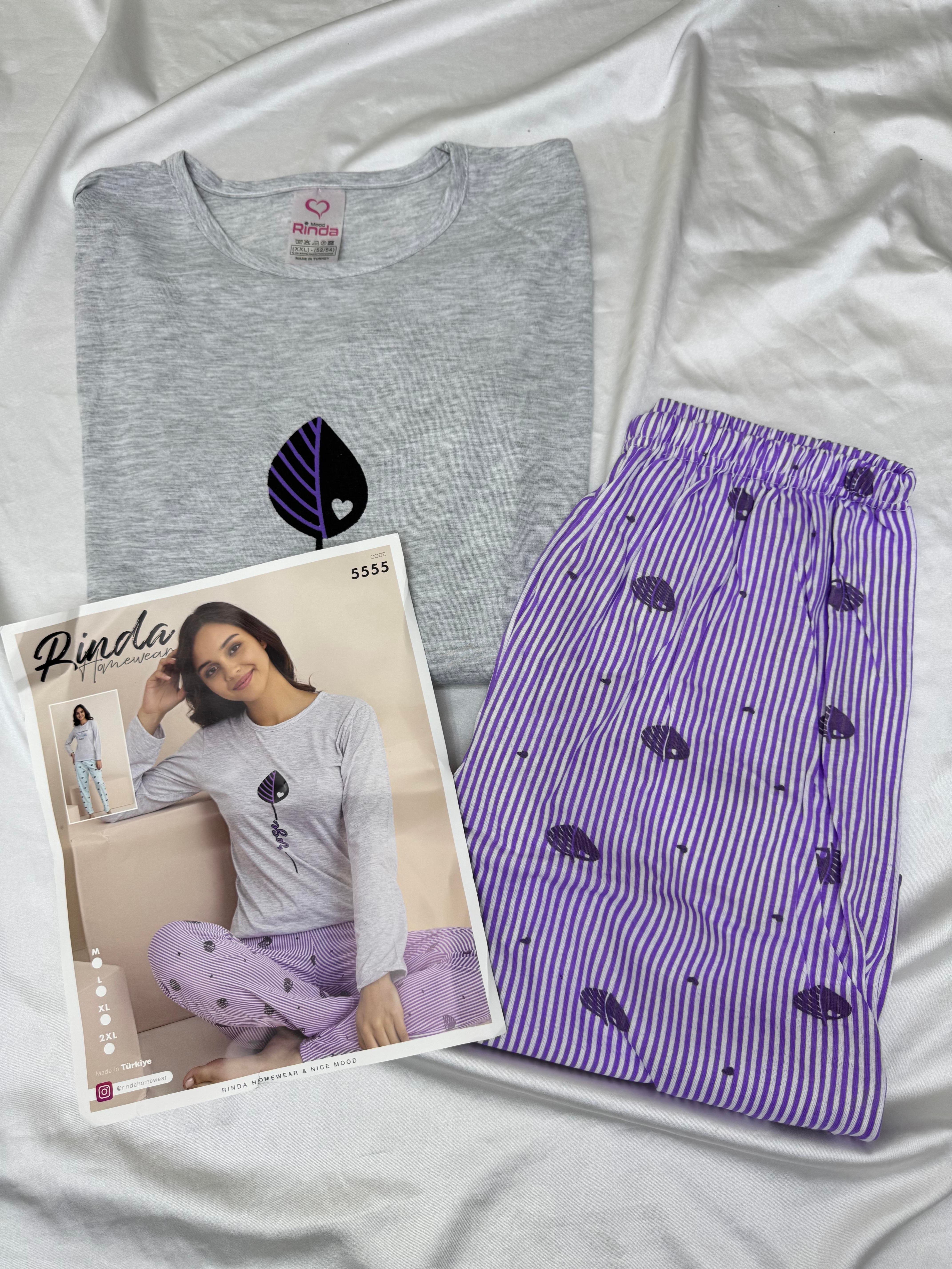 Ç5555- uzun kollu suprem pijama takımı - mor (Ç5555)