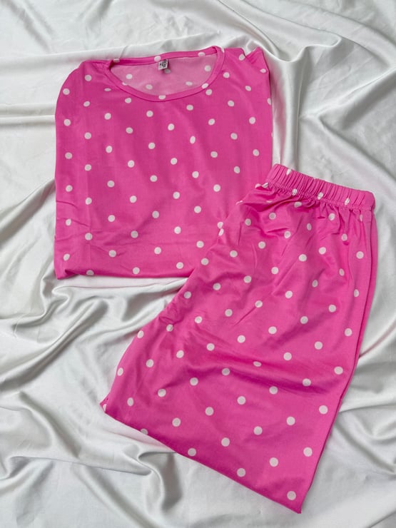 ç571 - milan kumaş kısa kollu puantiyeli pijama takımı - pembe (ç571)