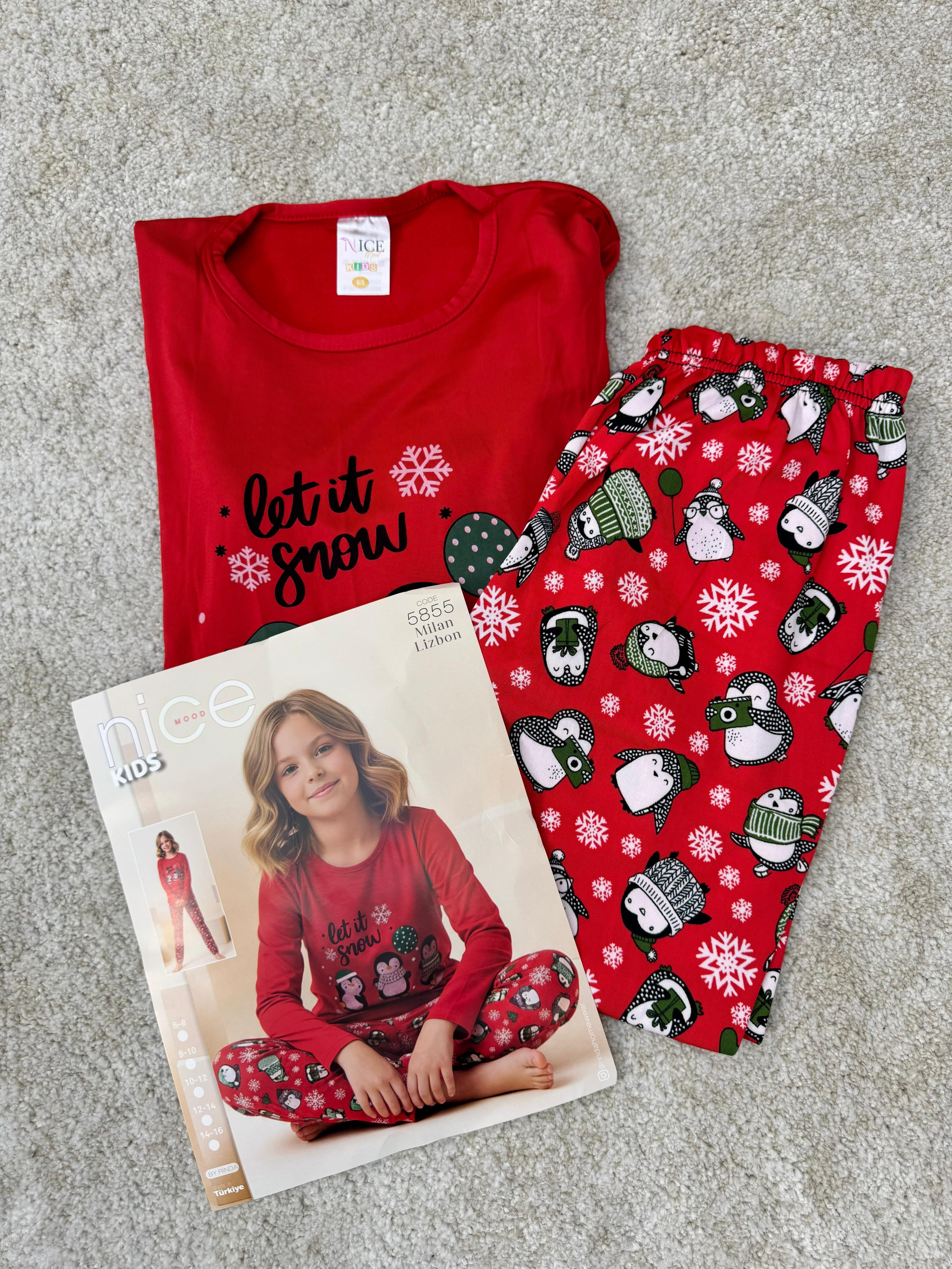 ç5855-lizbon milan kumaş kız çoçuk pijama takımı-kırmızı (ç5855)