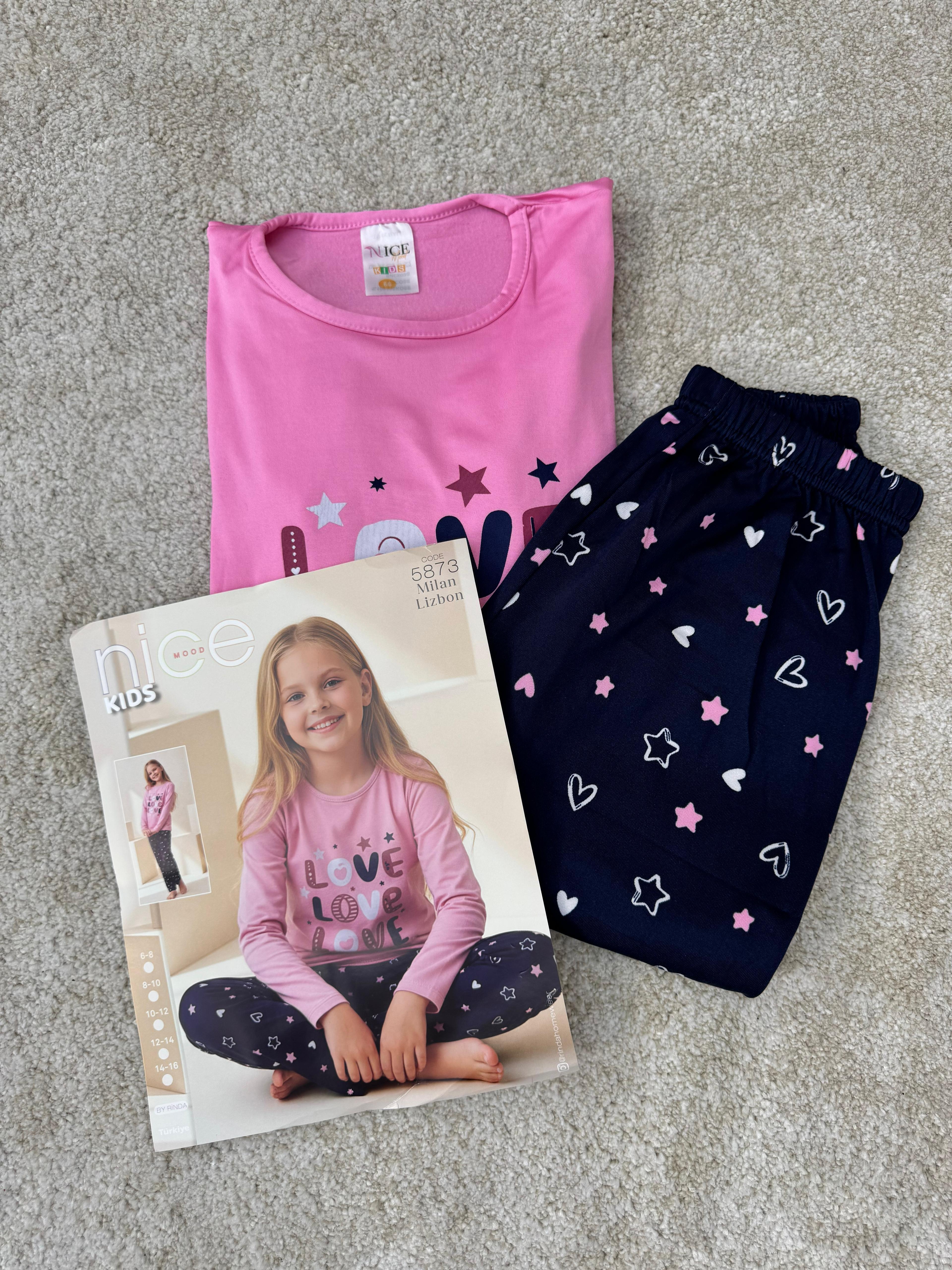 ç5873-lizbon milan kumaş kız çoçuk pijama takımı-pembe (ç5873)