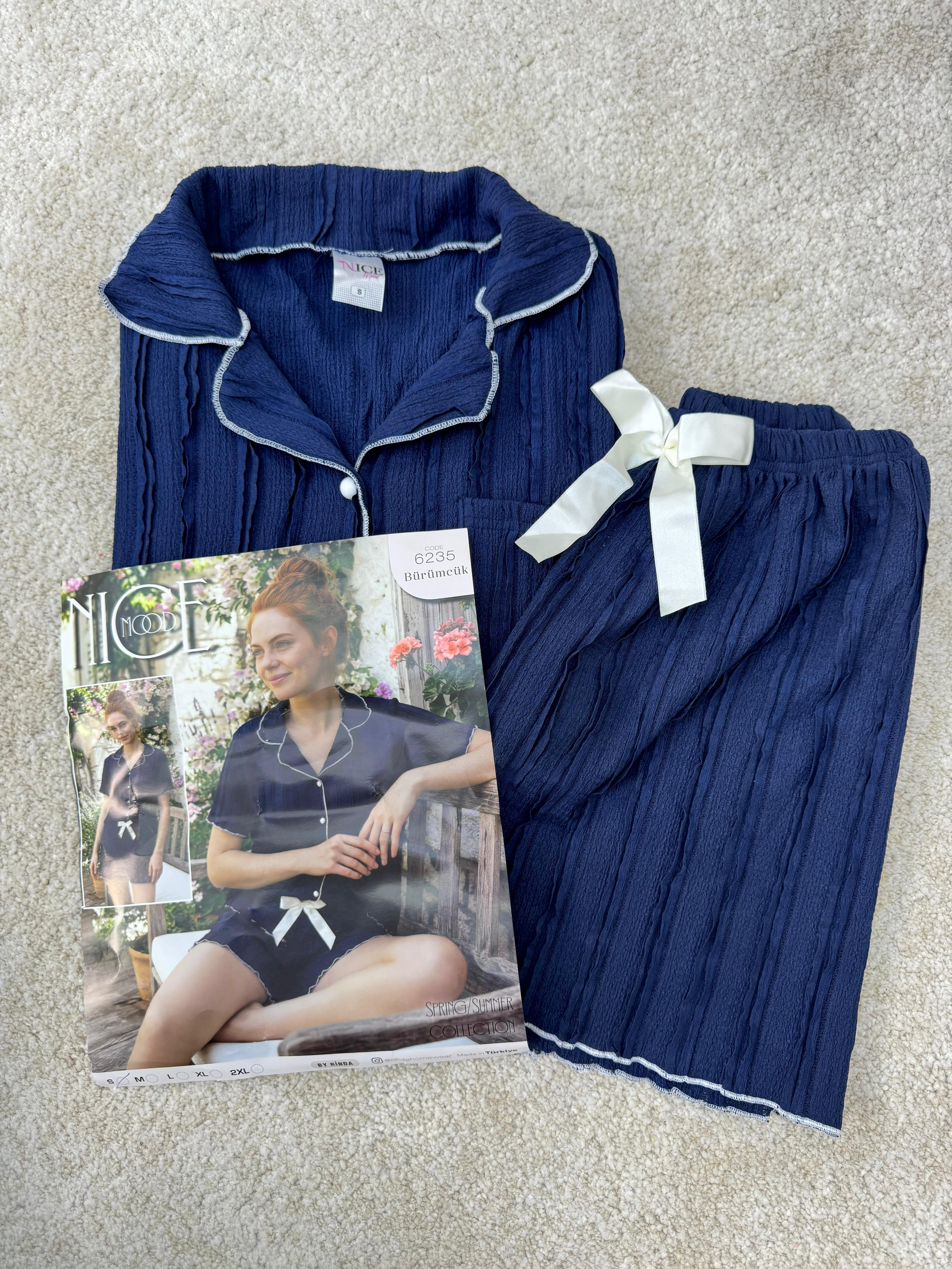 ç6235-bürümcük kumaş şortlu pijama takımı-lacivert (ç6235)