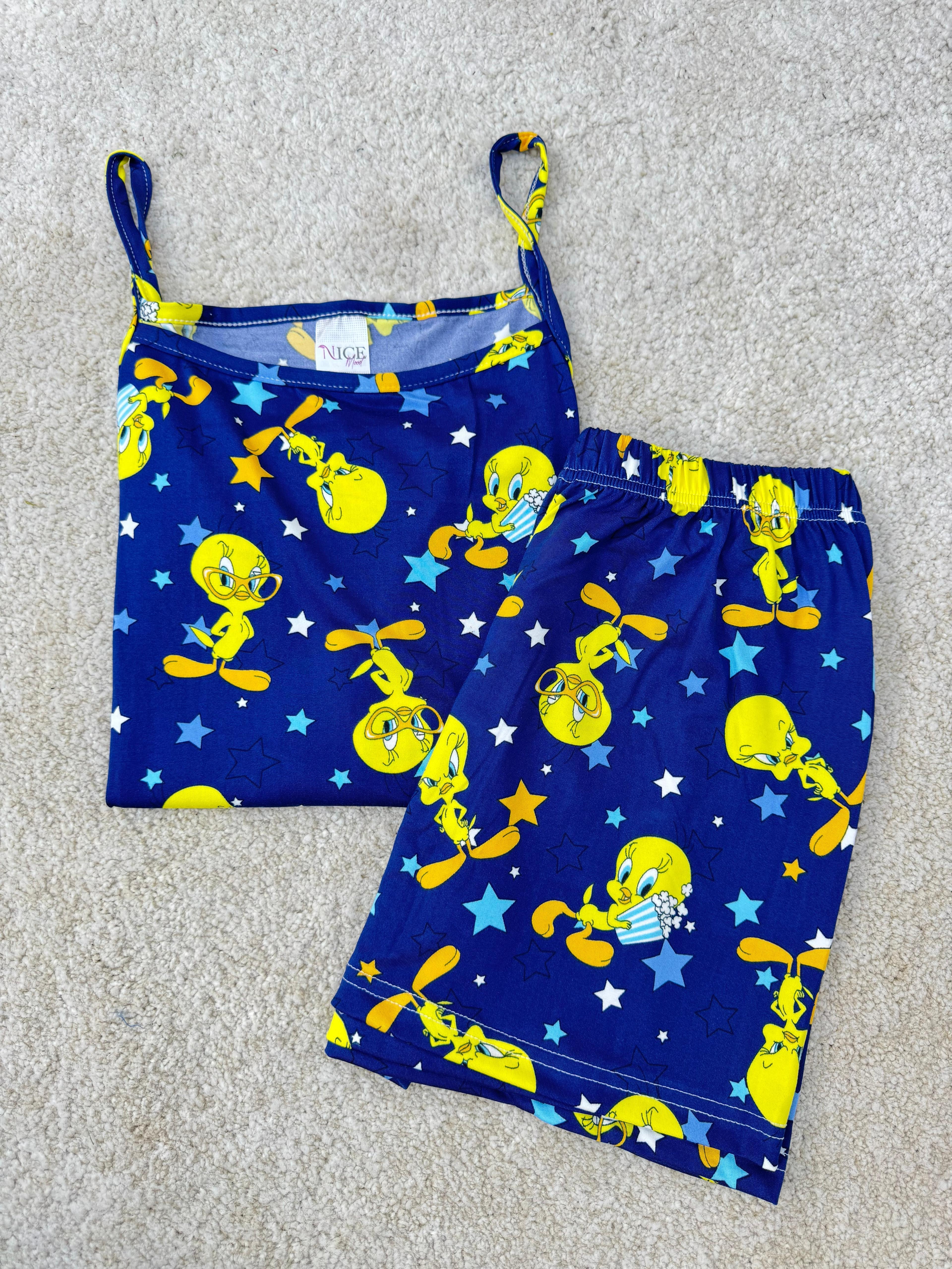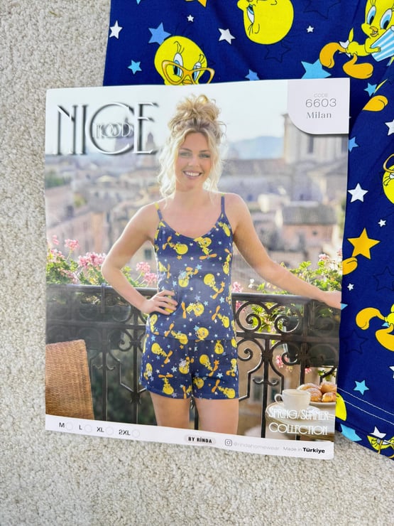 ç6603-milan kumaş tweety şortlu pijama takımı-lacivert (ç6603)