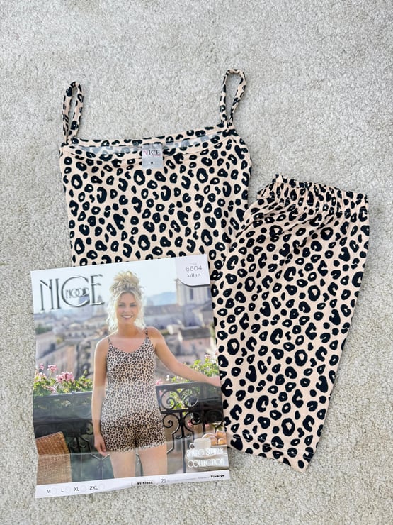 ç6604-milan kumaş leopar şortlu pijama takımı (ç6604)