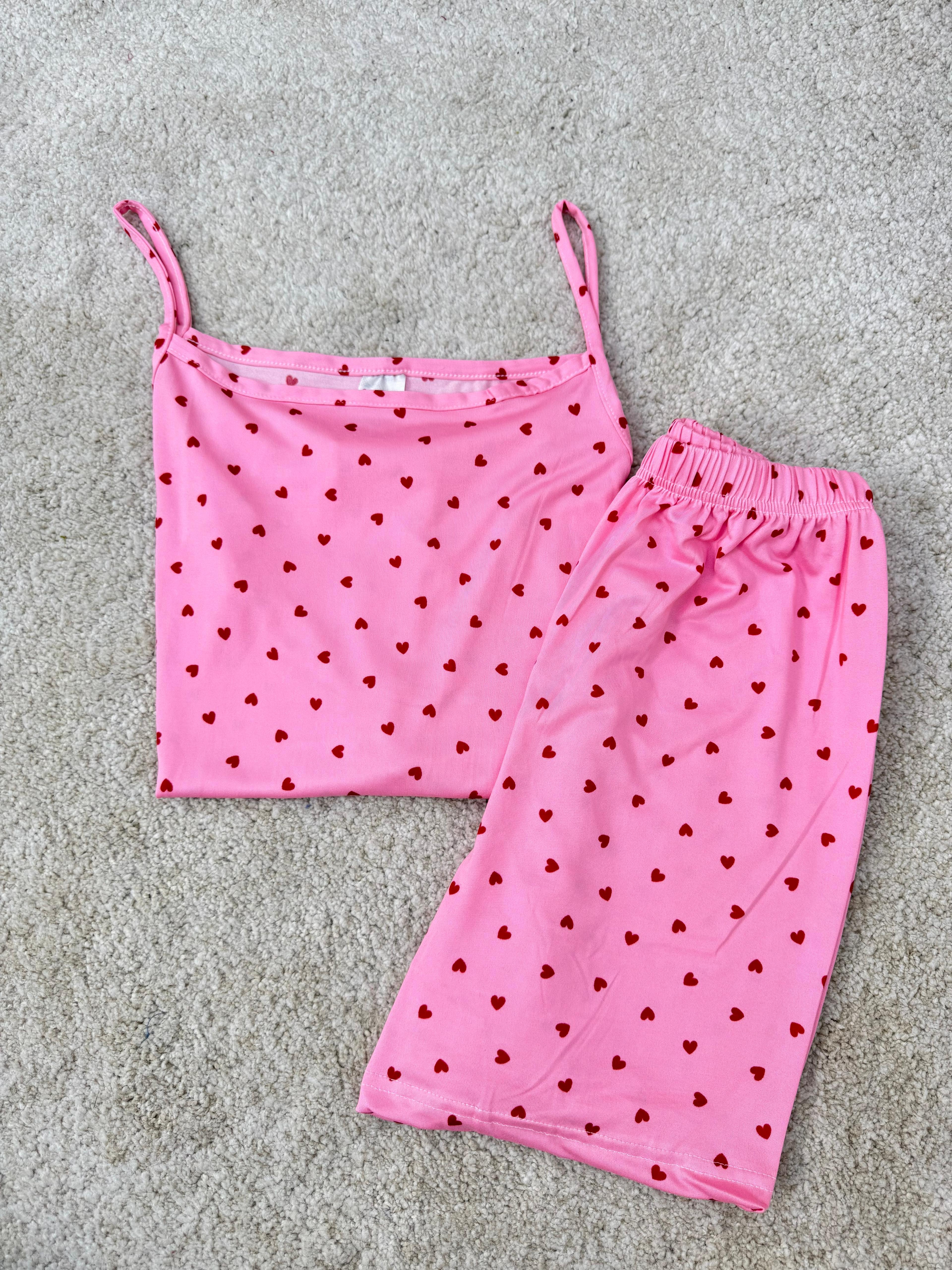 ç6606-milan kumaş kalpli şortlu pijama takımı-pembe (ç6606)