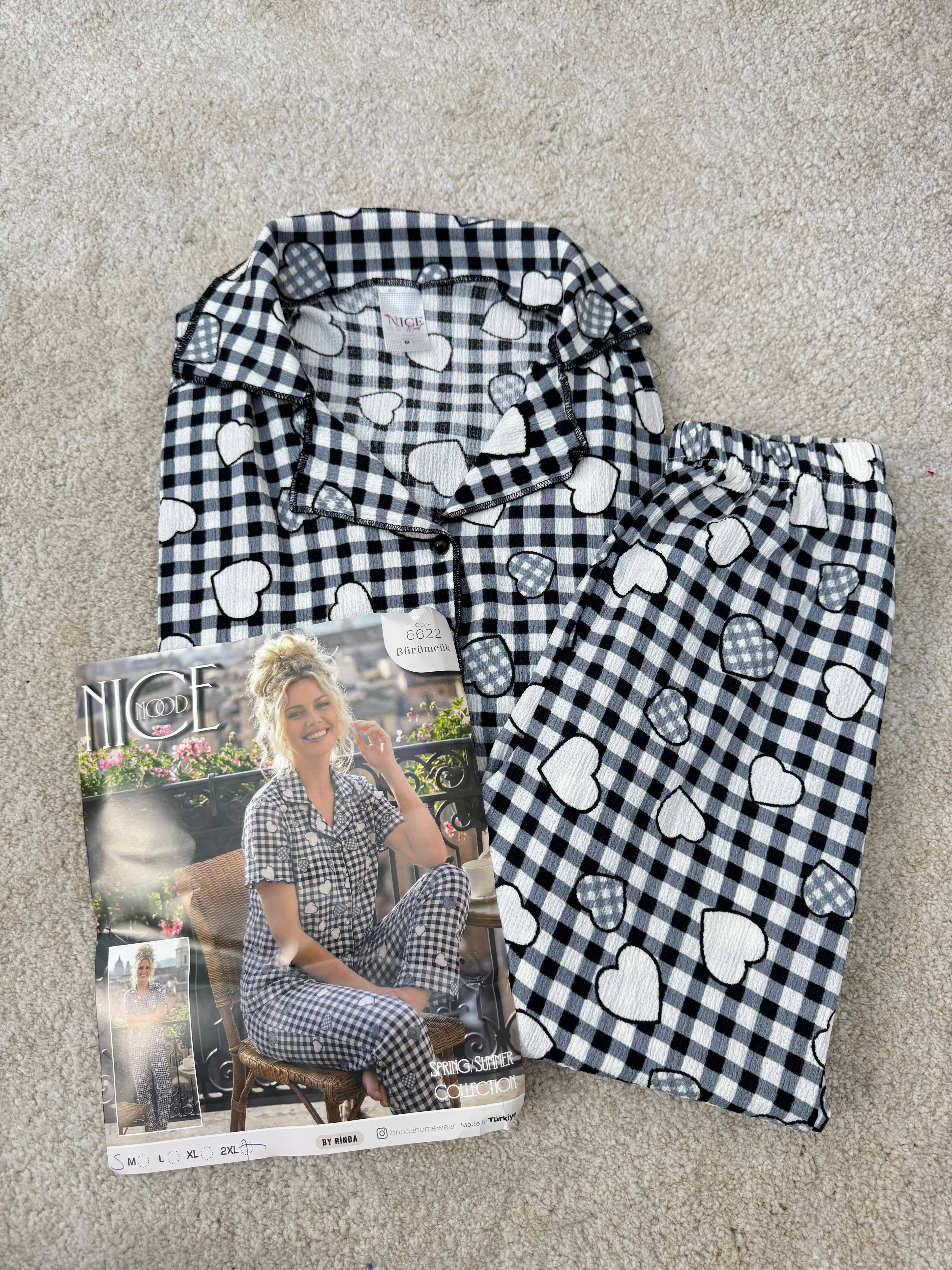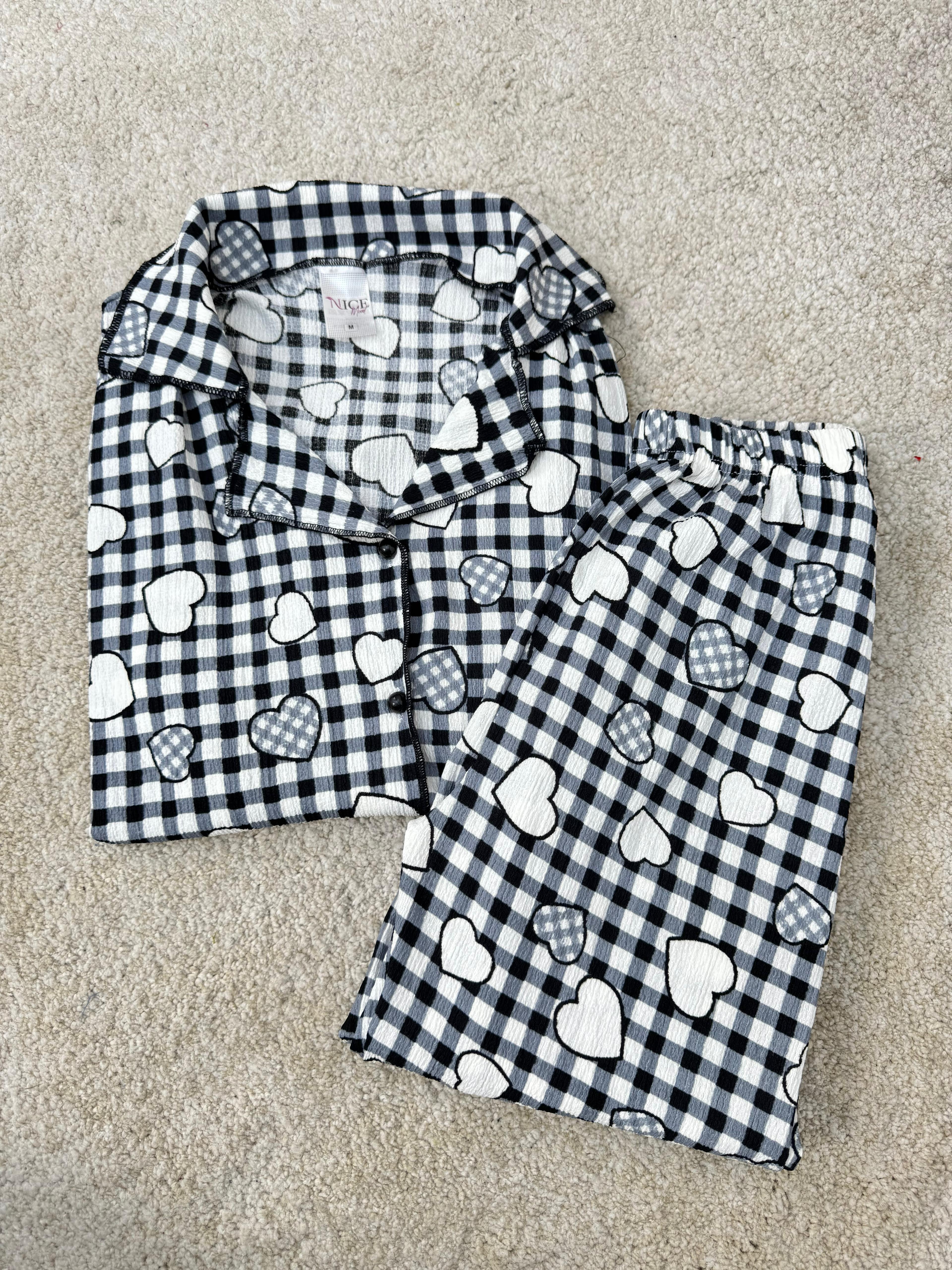 ç6622-bürümcük kumaş gömlek yaka kısa kollu pijama takımı-siyah (ç6622)