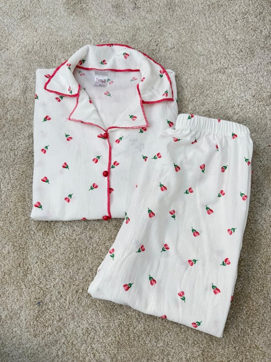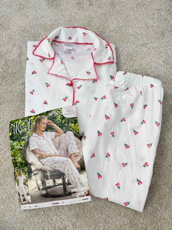 ç6624-bürümcük kumaş gömlek yaka kısa kollu pijama takımı-beyaz (ç6624)