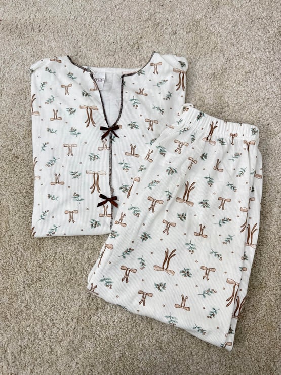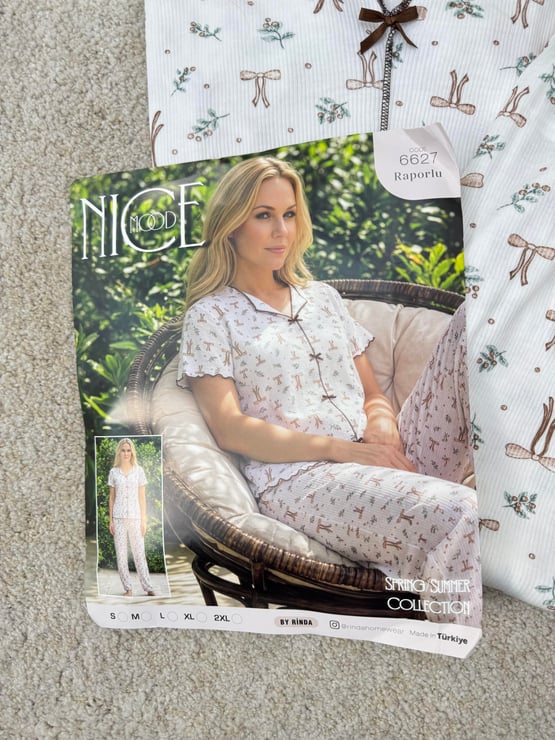 ç6627-raporlu bürümcük kumaş kısa kollu pijama takımı-beyaz (ç6627)