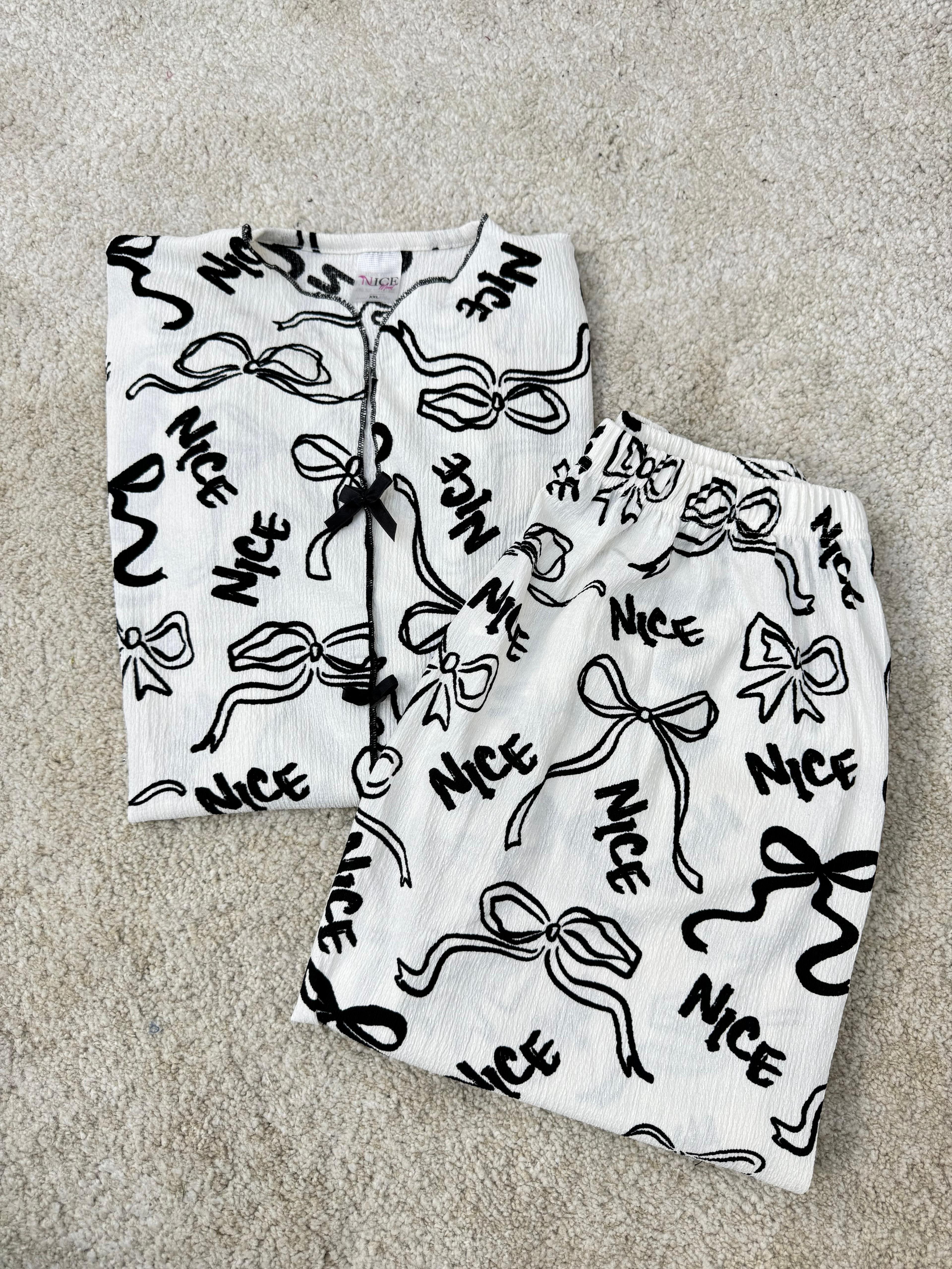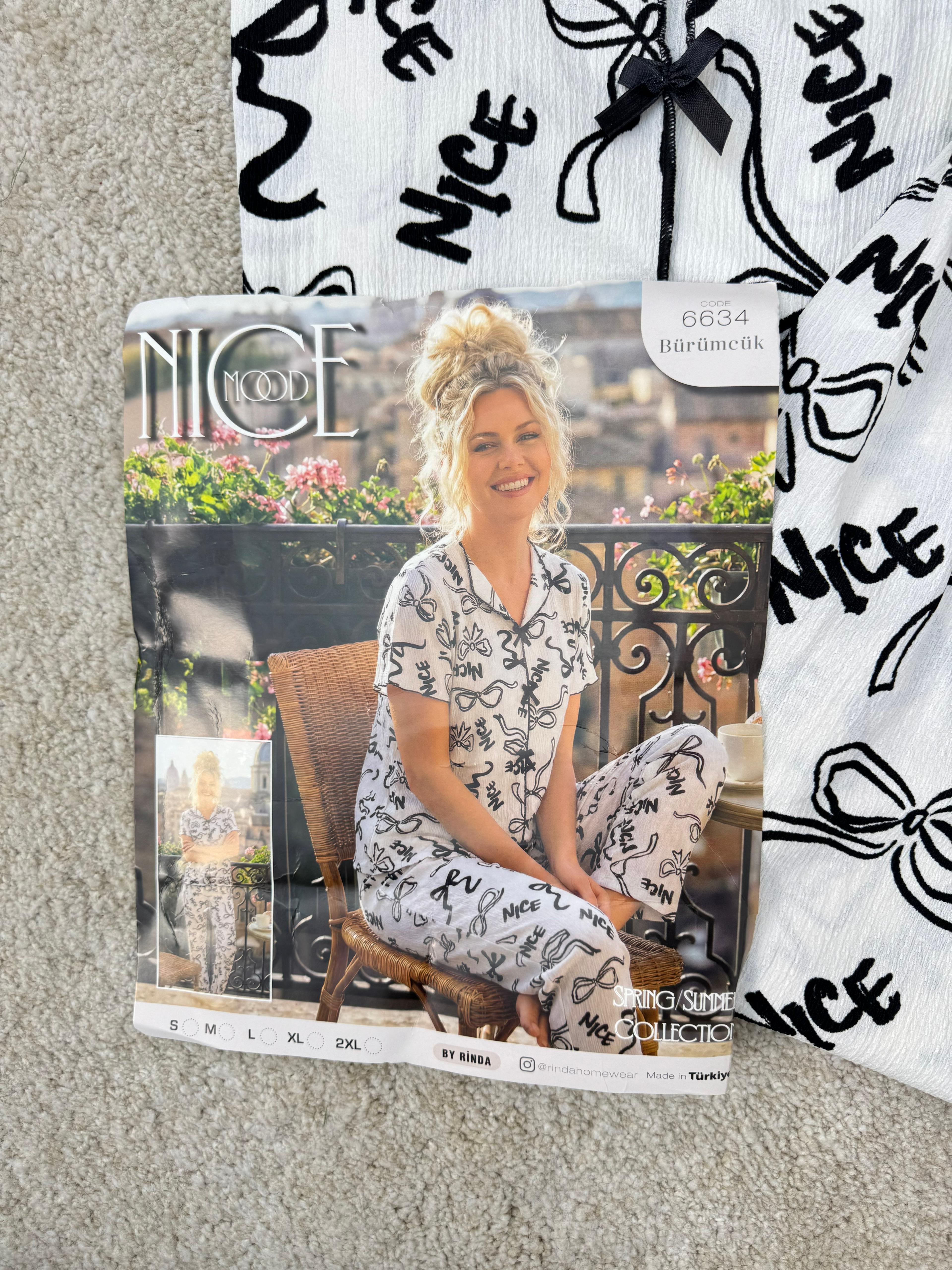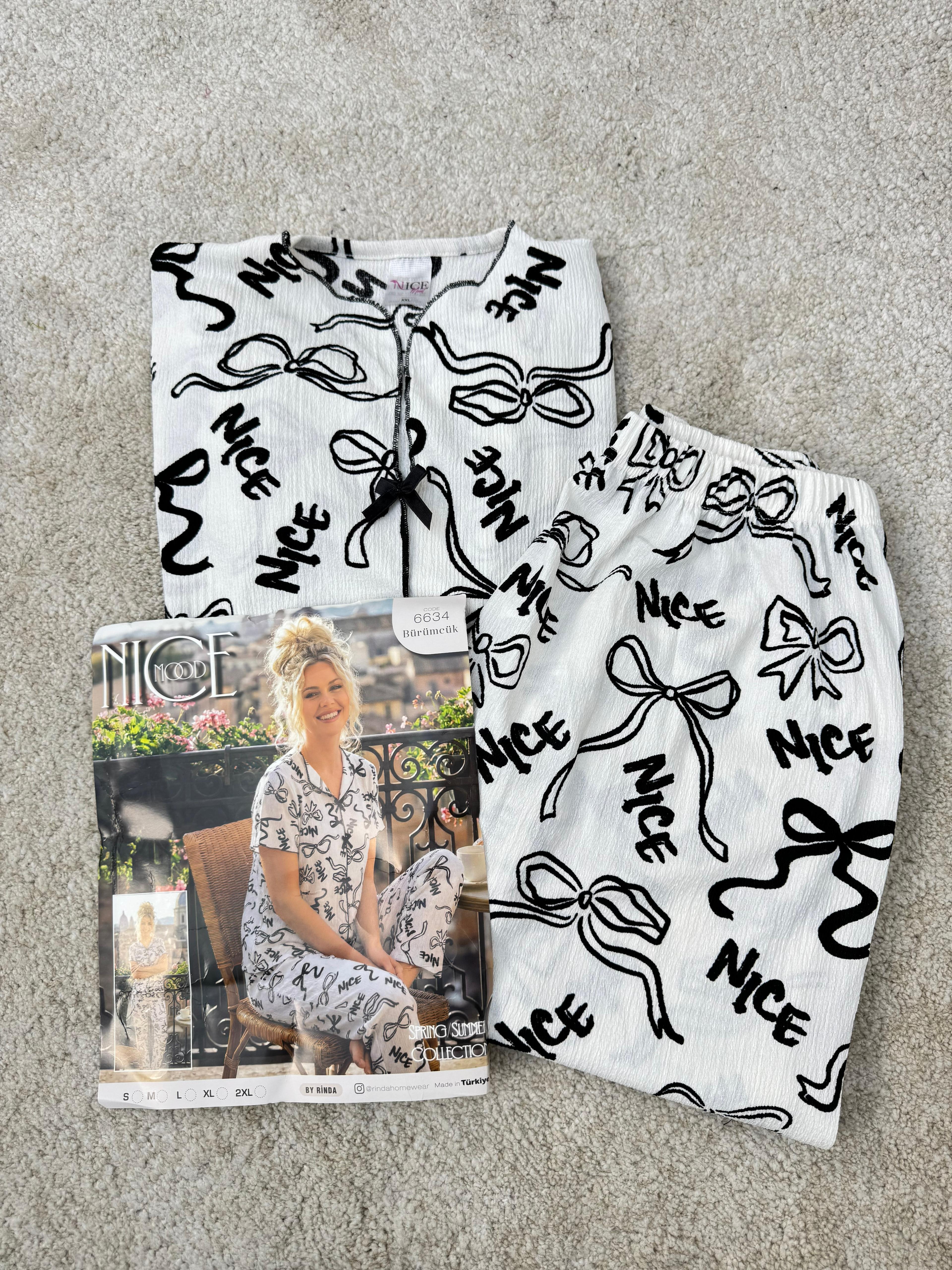 ç6634-bürümcük kumaş gömlek yaka kısa kollu pijama takımı-beyaz (ç6634)