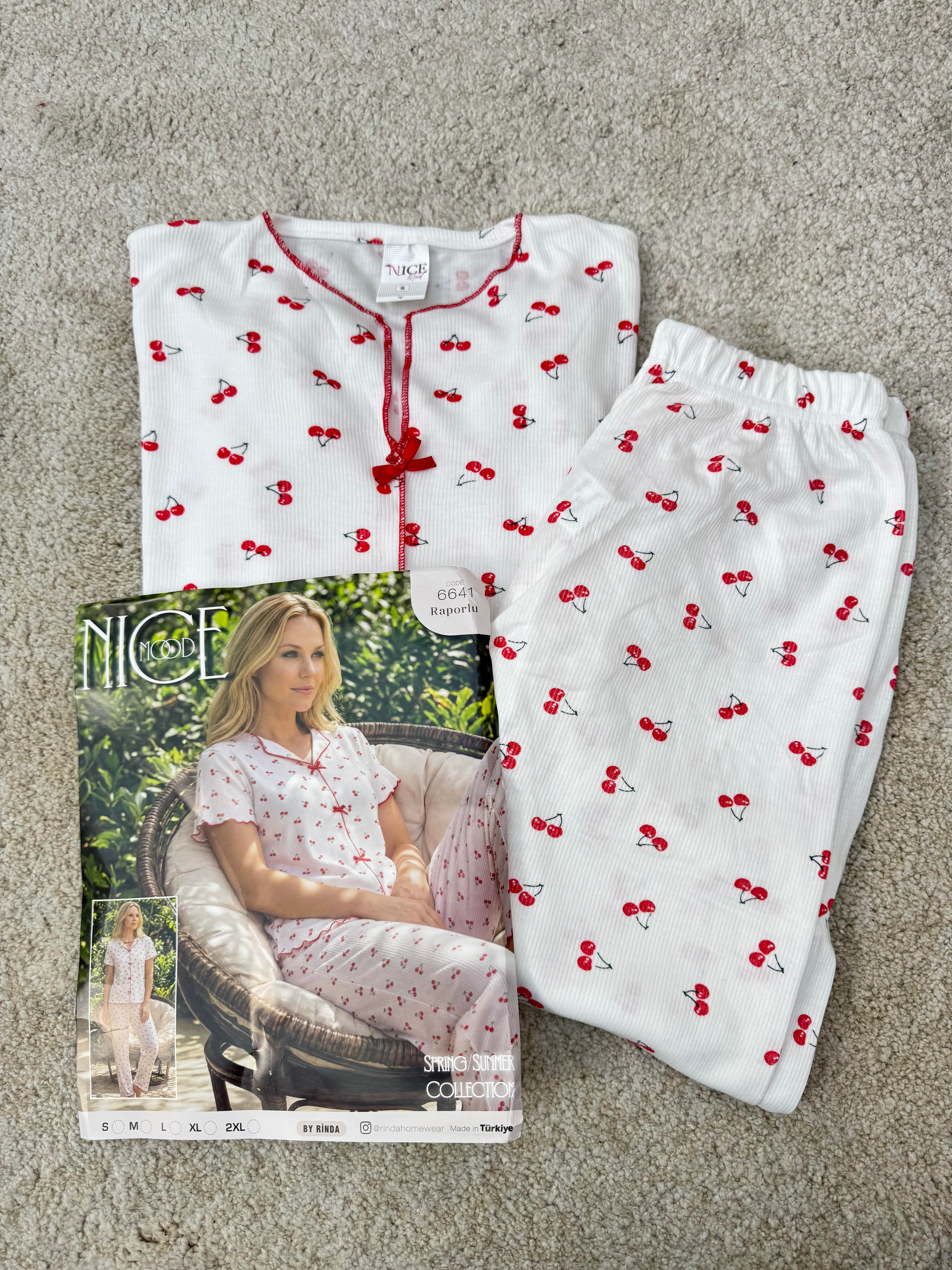 ç6641-raporlu bürümcük kumaş kısa kollu pijama takımı-beyaz (ç6641)