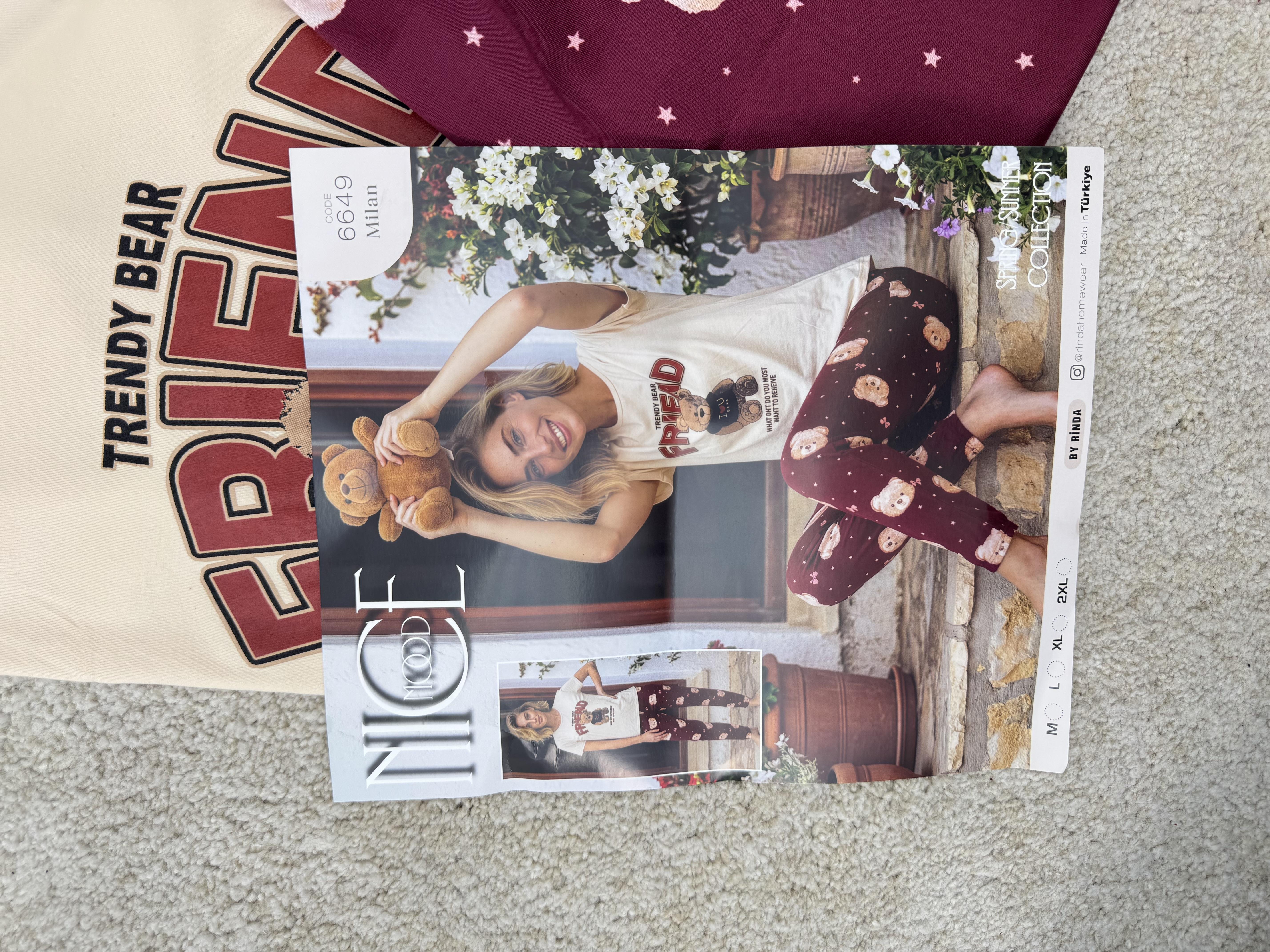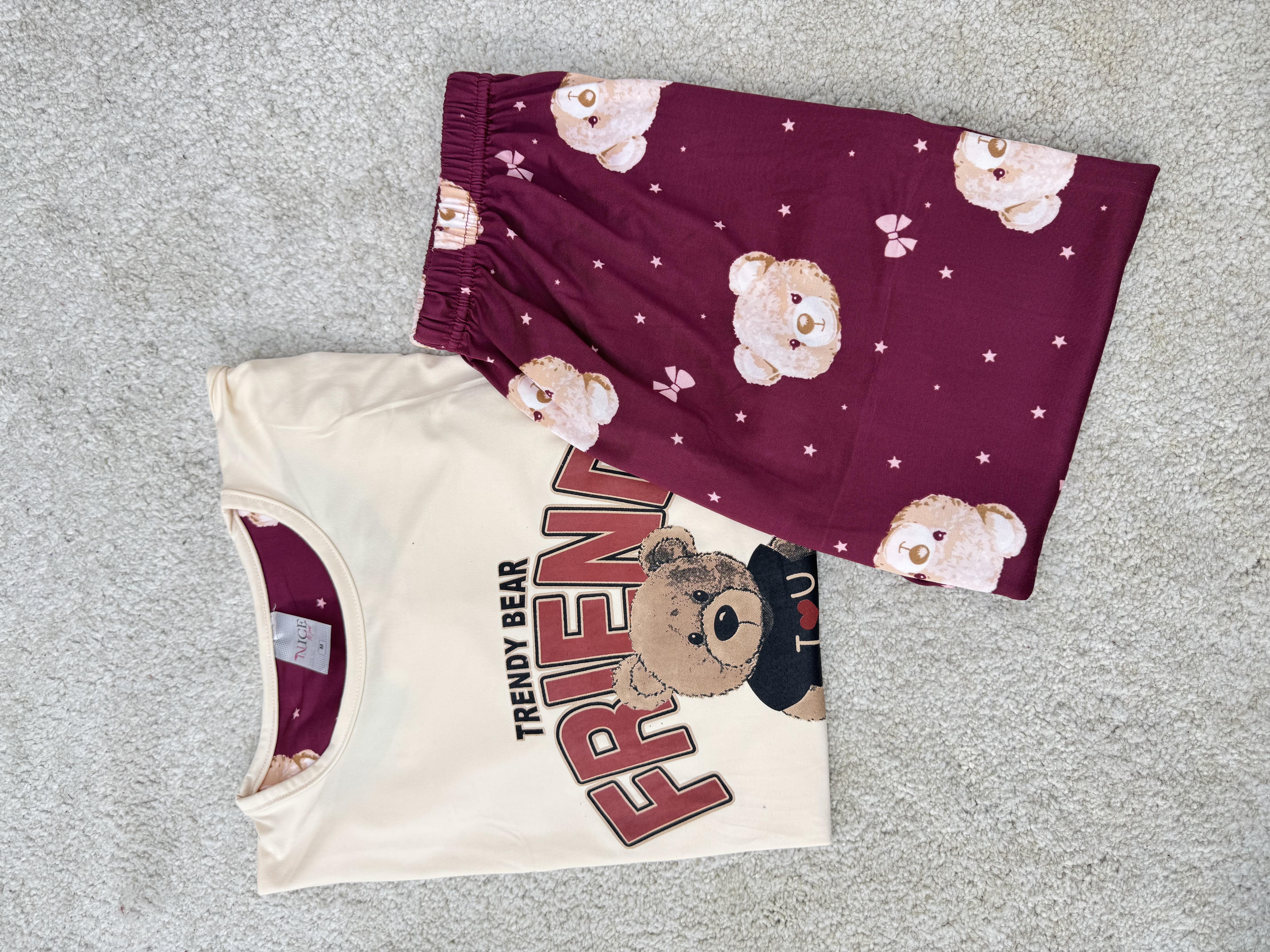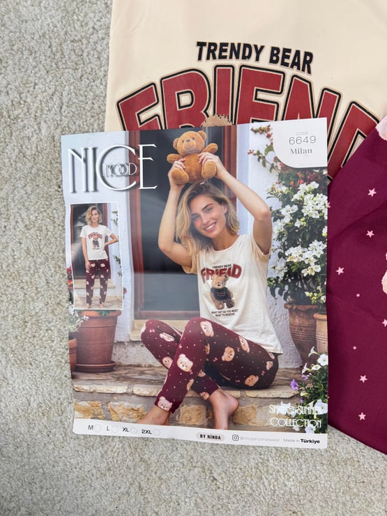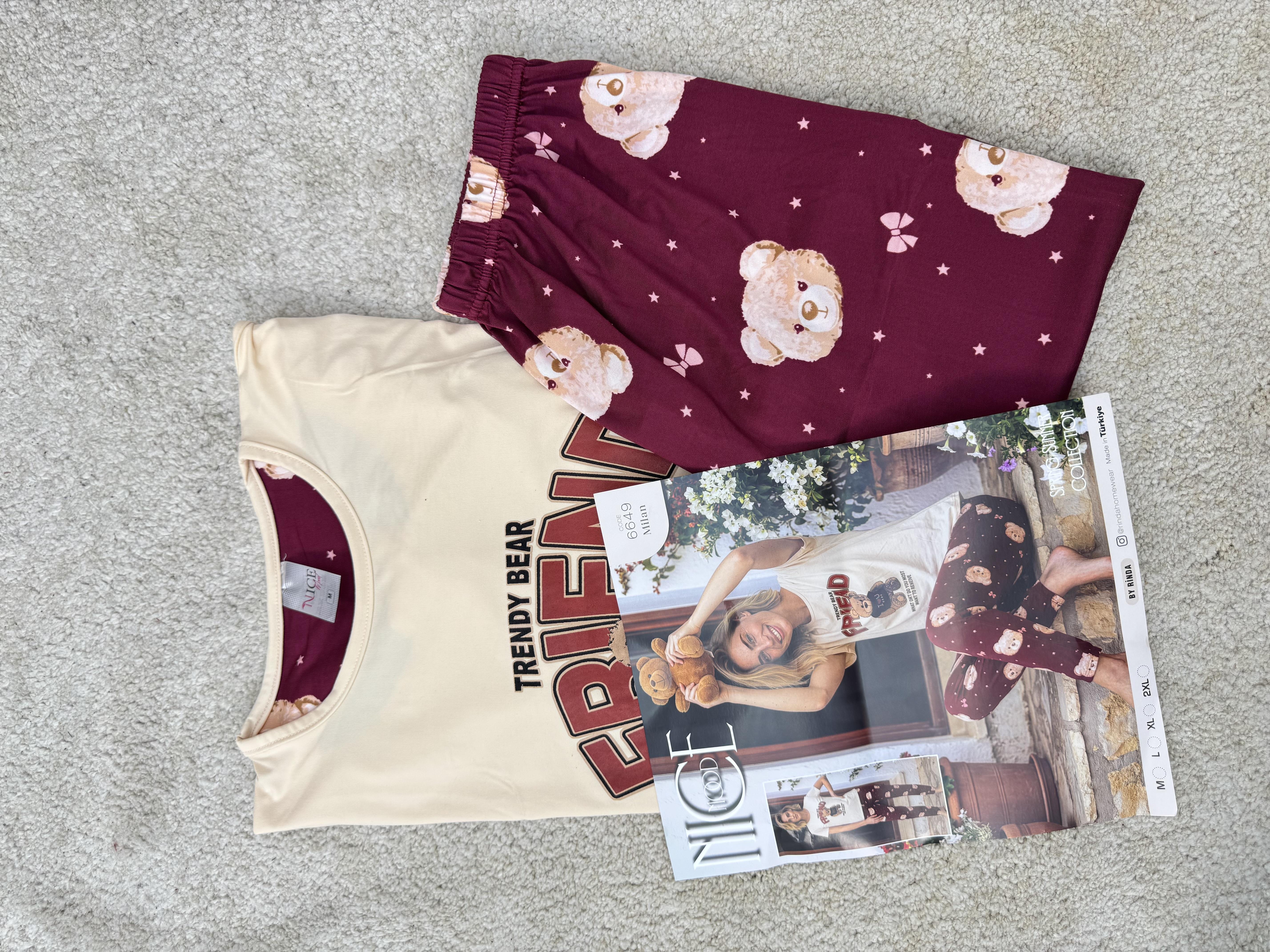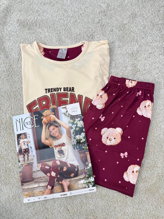 ç6649-milan kumaş kısa kollu frıend pijama takımı-bordo (ç6649)