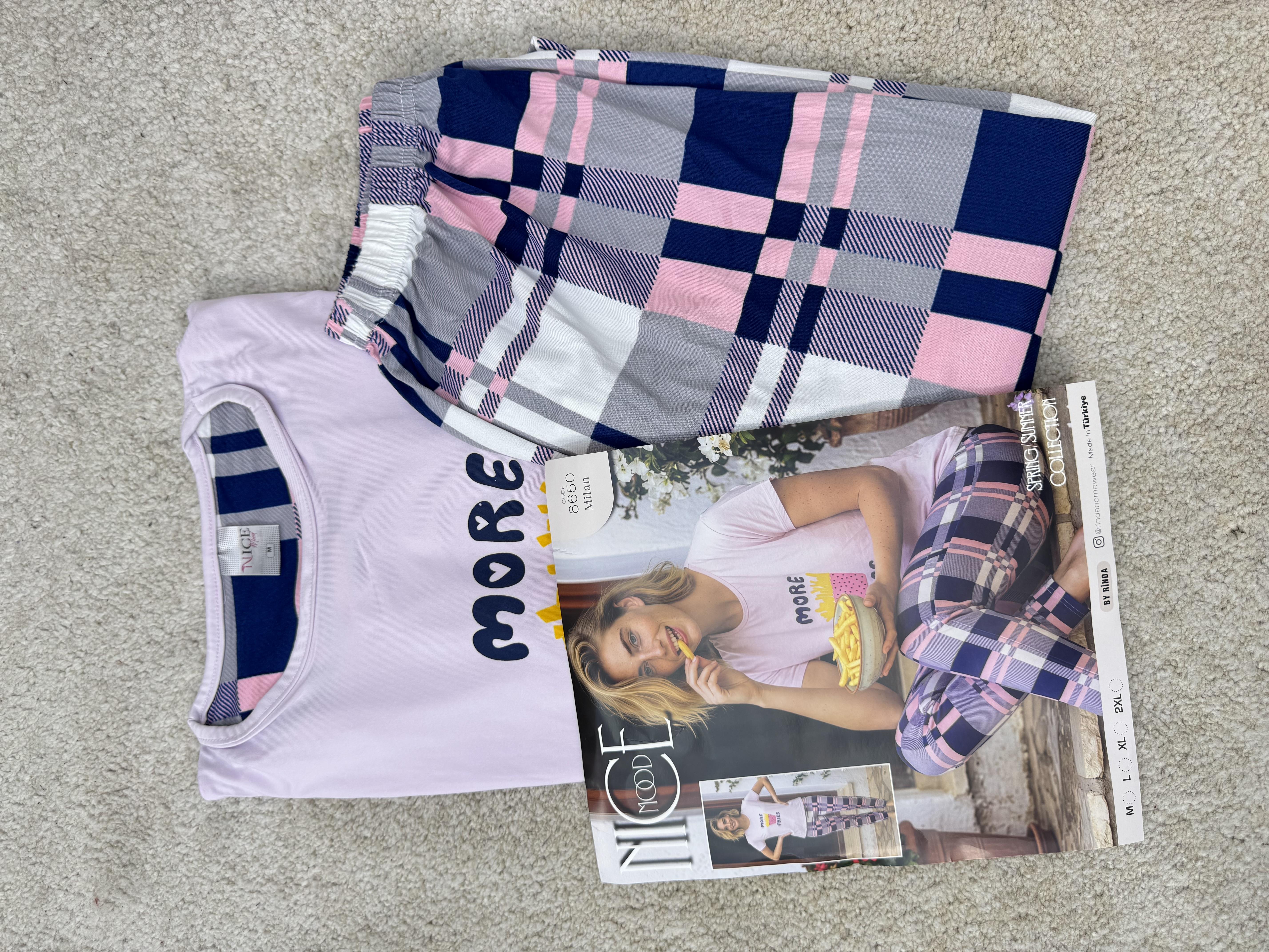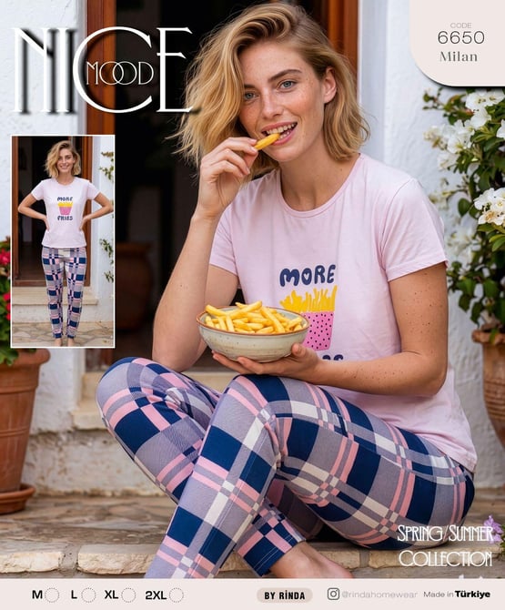 ç6650-milan kumaş kısa kollu pijama takımı-pudra (ç6650)