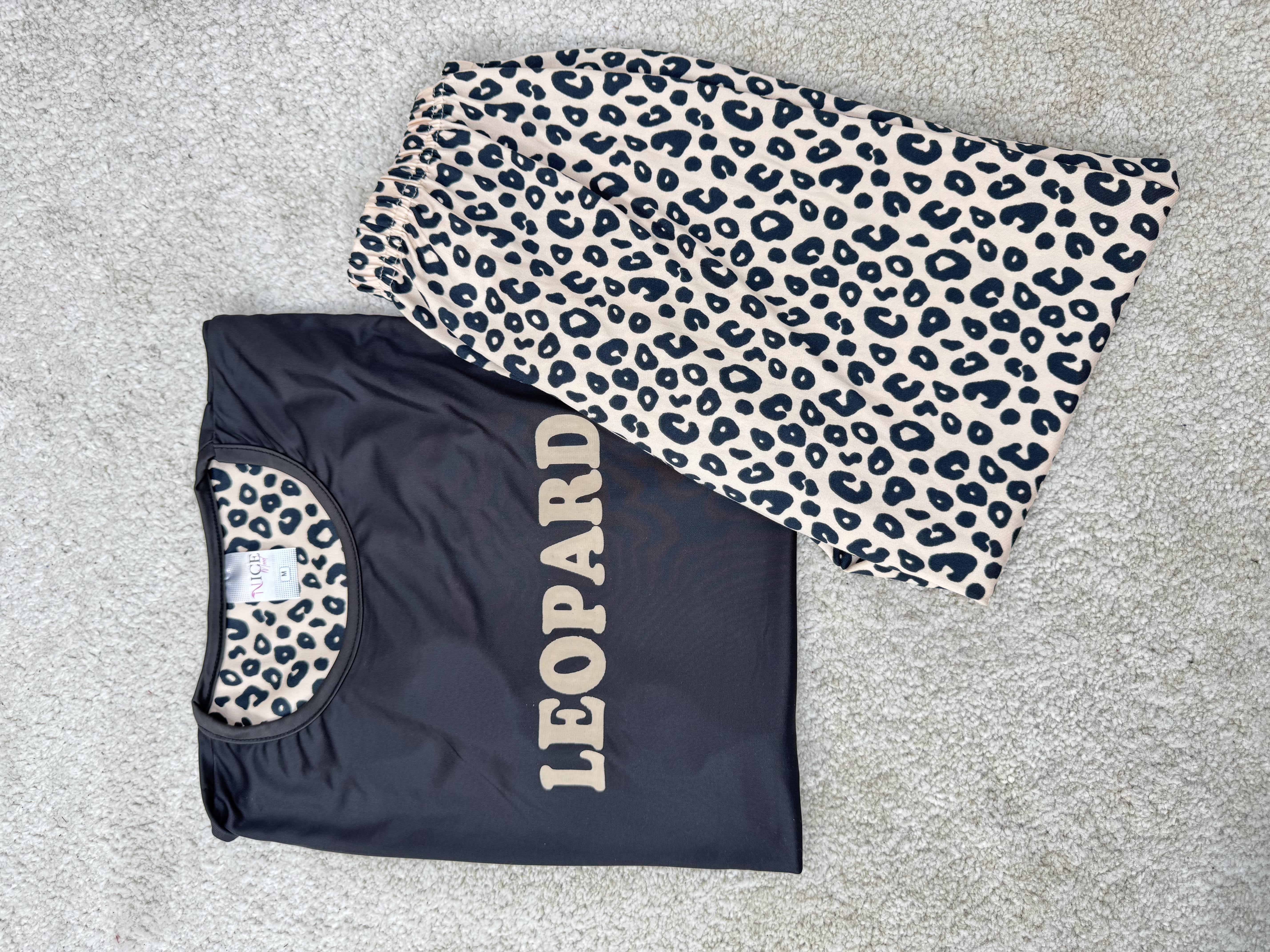 ç6652-milan kumaş kısa kollu leopar pijama takımı-siyah (ç6652)