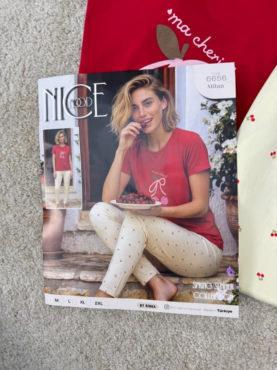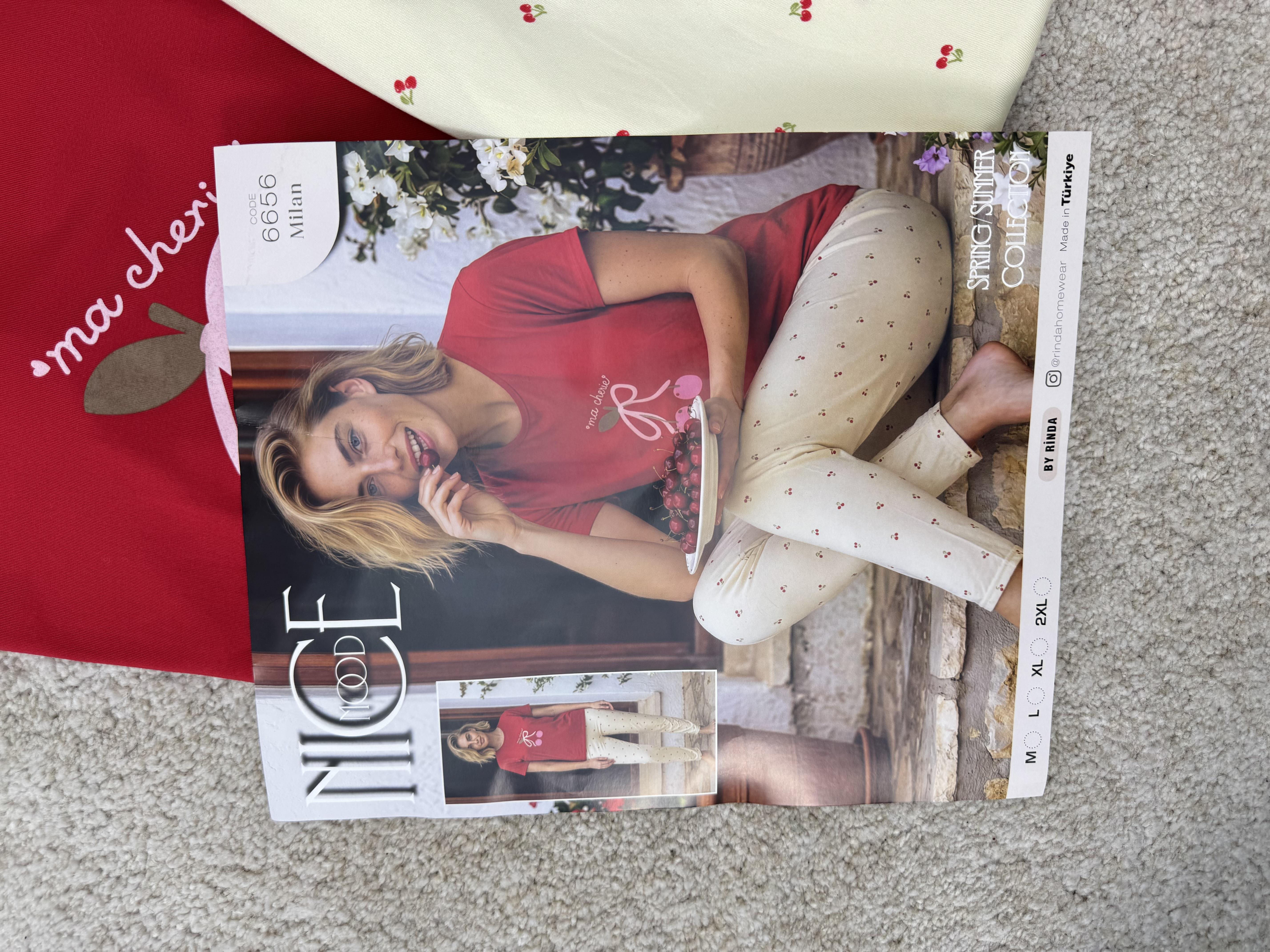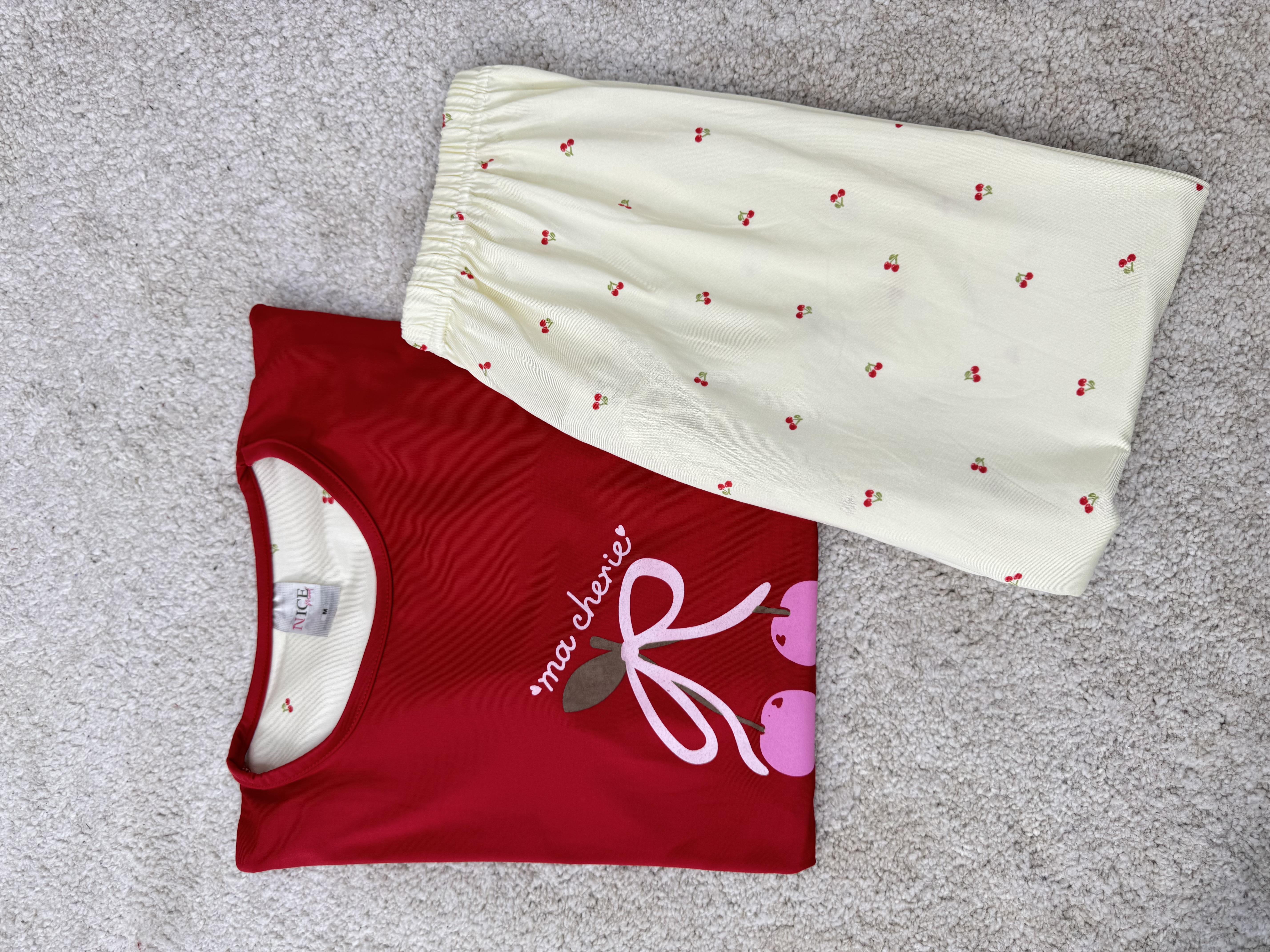 ç6656-milan kumaş kısa kollu pijama takımı-kırmızı (ç6656)