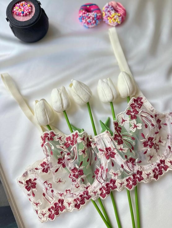 Ç7103 - ÇİÇEKLİ TÜL SÜTYEN TAKIMLARI - BEYAZ (Ç7103)