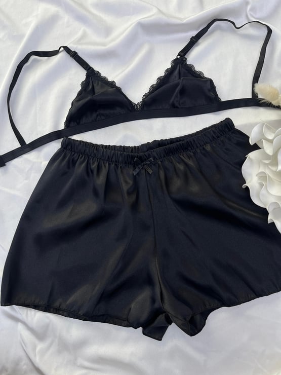 Ç7610 - SATEN ŞORTLU SÜTYEN TAKIMI - SİYAH (Ç7610)