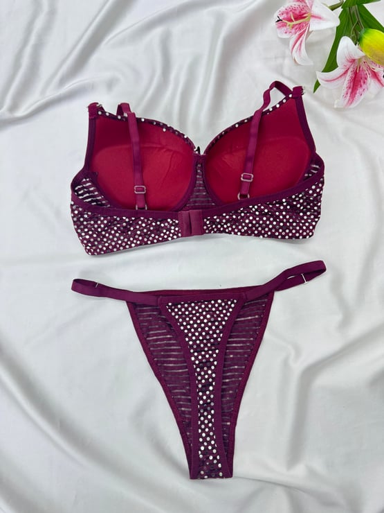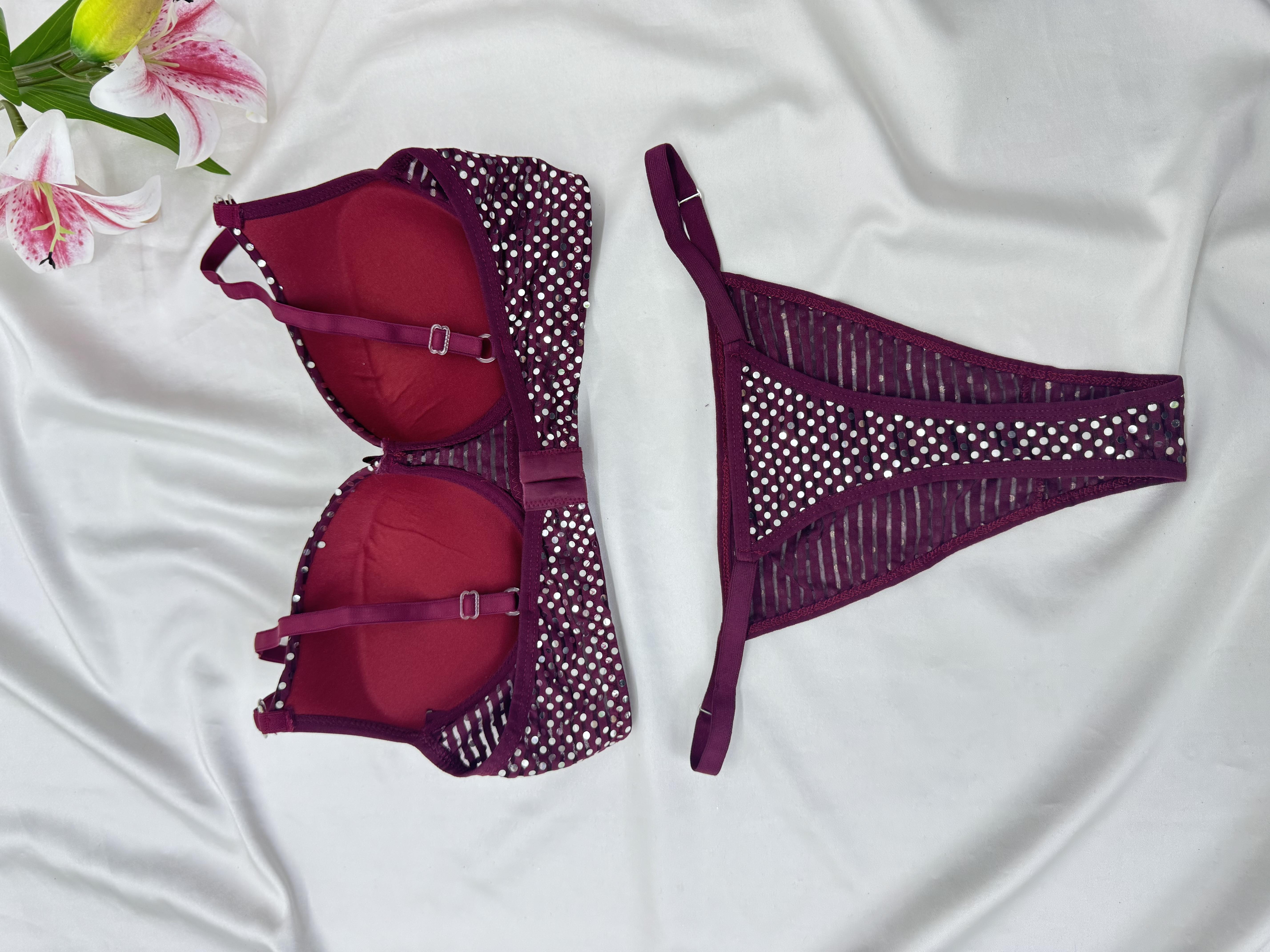 Ç767 DESTEKLİ SİMLİ SHİNE SÜTYEN TAKIMI-BORDO(GOLD) (Ç767)