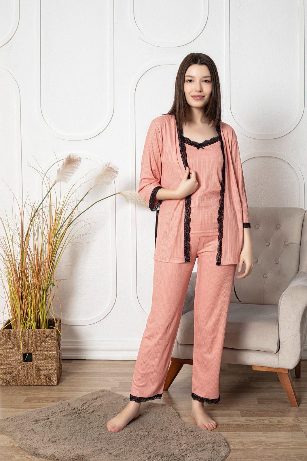 Ç8070 - DANTEL DETAYLI 3LÜ PIJAMA TAKIMI SETİ - PUDRA (Ç8070)