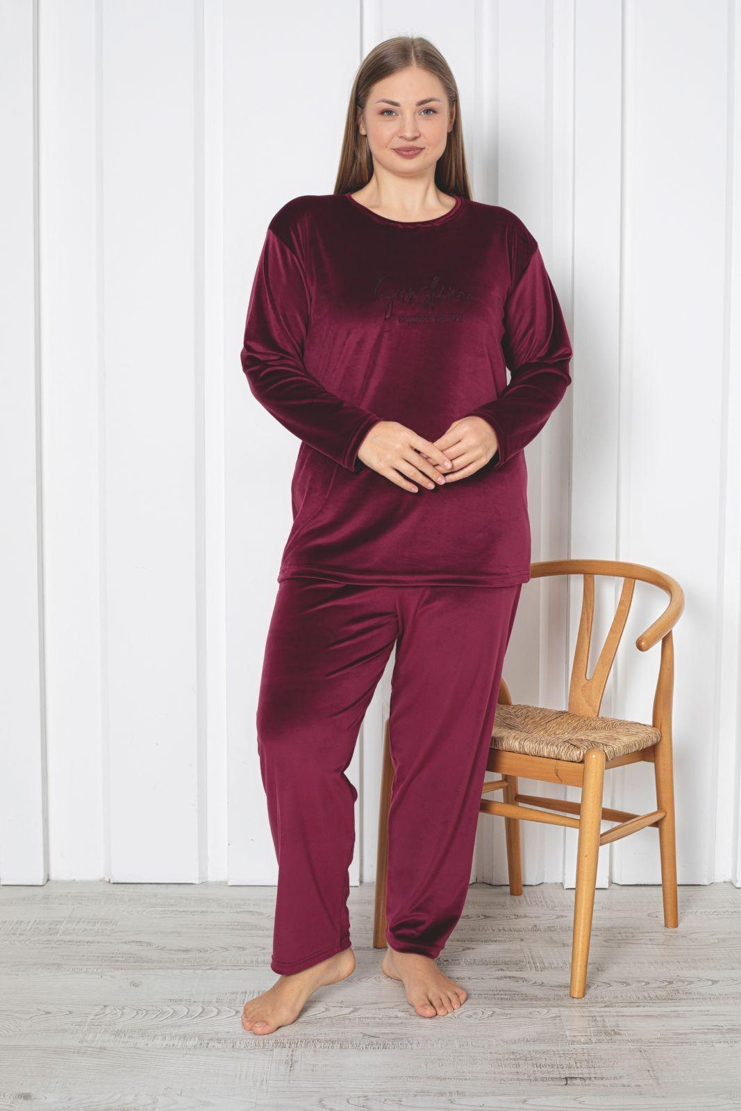 Ç8409- BÜYÜK BEDEN KADİFE PİJAMA TAKIMI - BORDO (Ç8409)