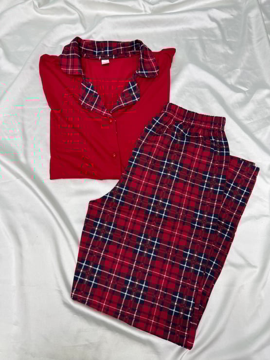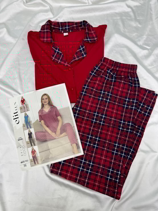 Ç8448 - gömlek yaka kısa kollu kareli takım - kırmızı (Ç8448)
