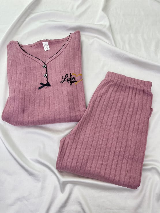 ç8538 -fitilli uzun kollu pijama takımı - gül kurusu (ç8538)