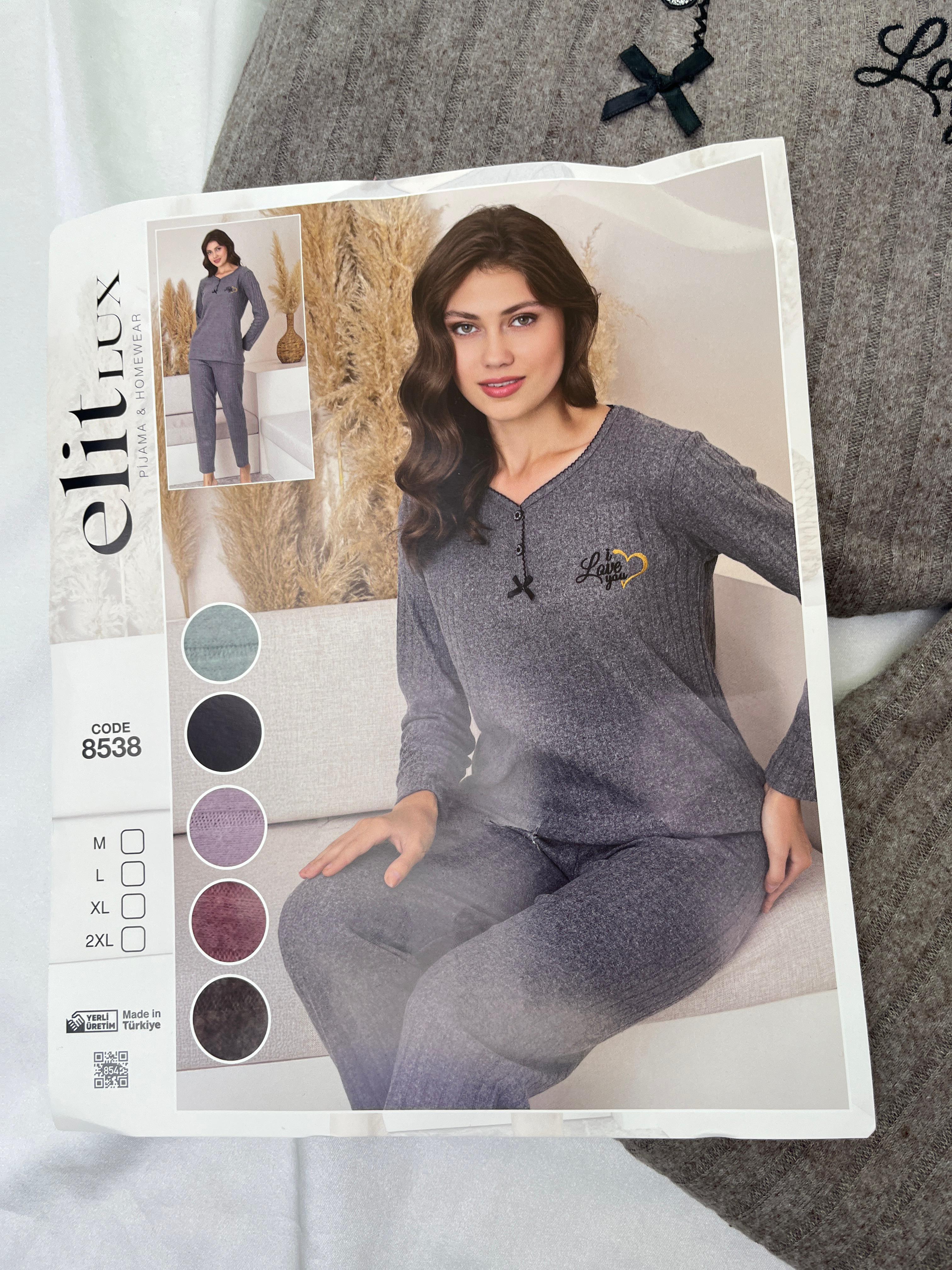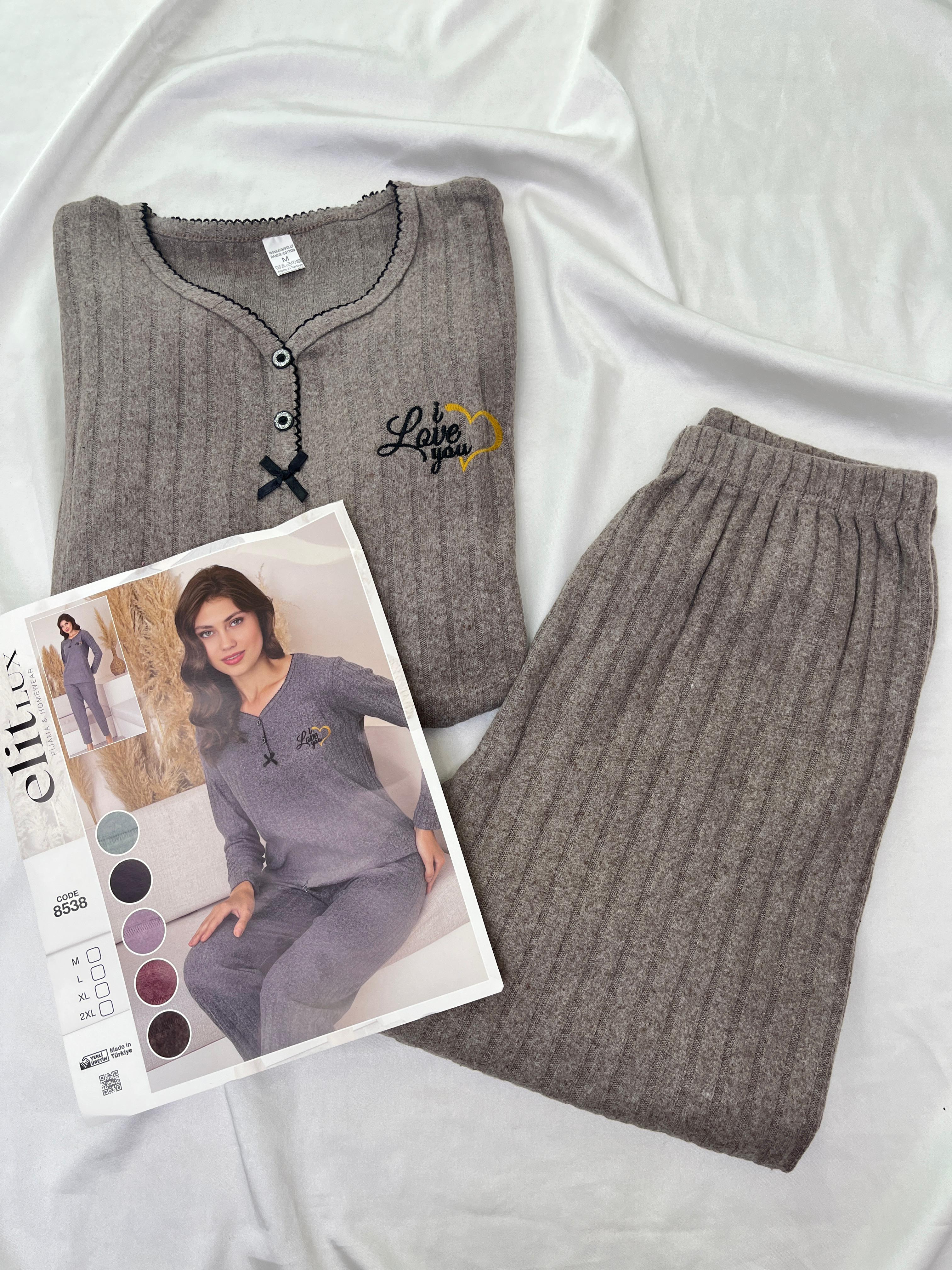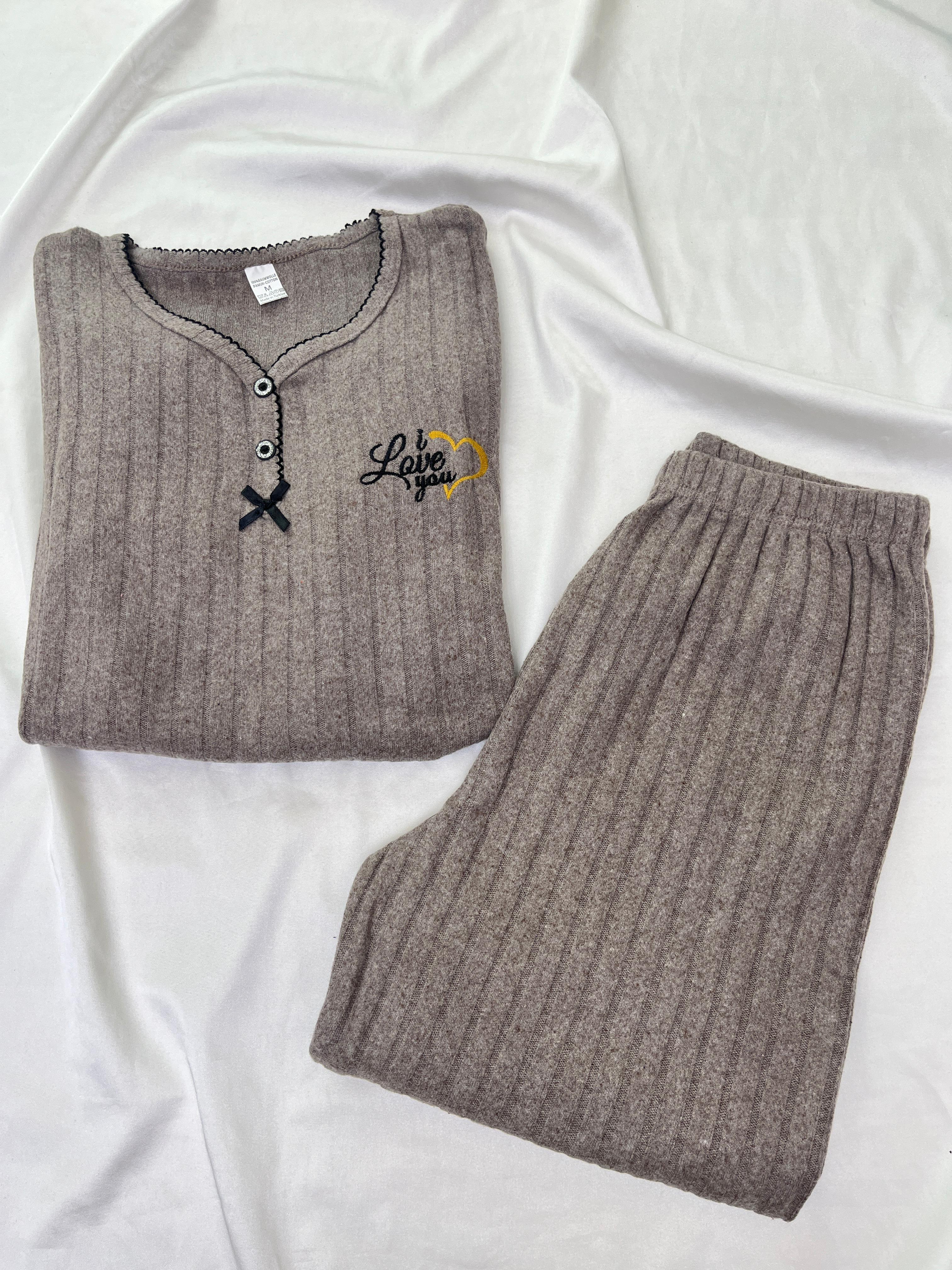 ç8538 -fitilli uzun kollu pijama takımı - kahve (ç8538)