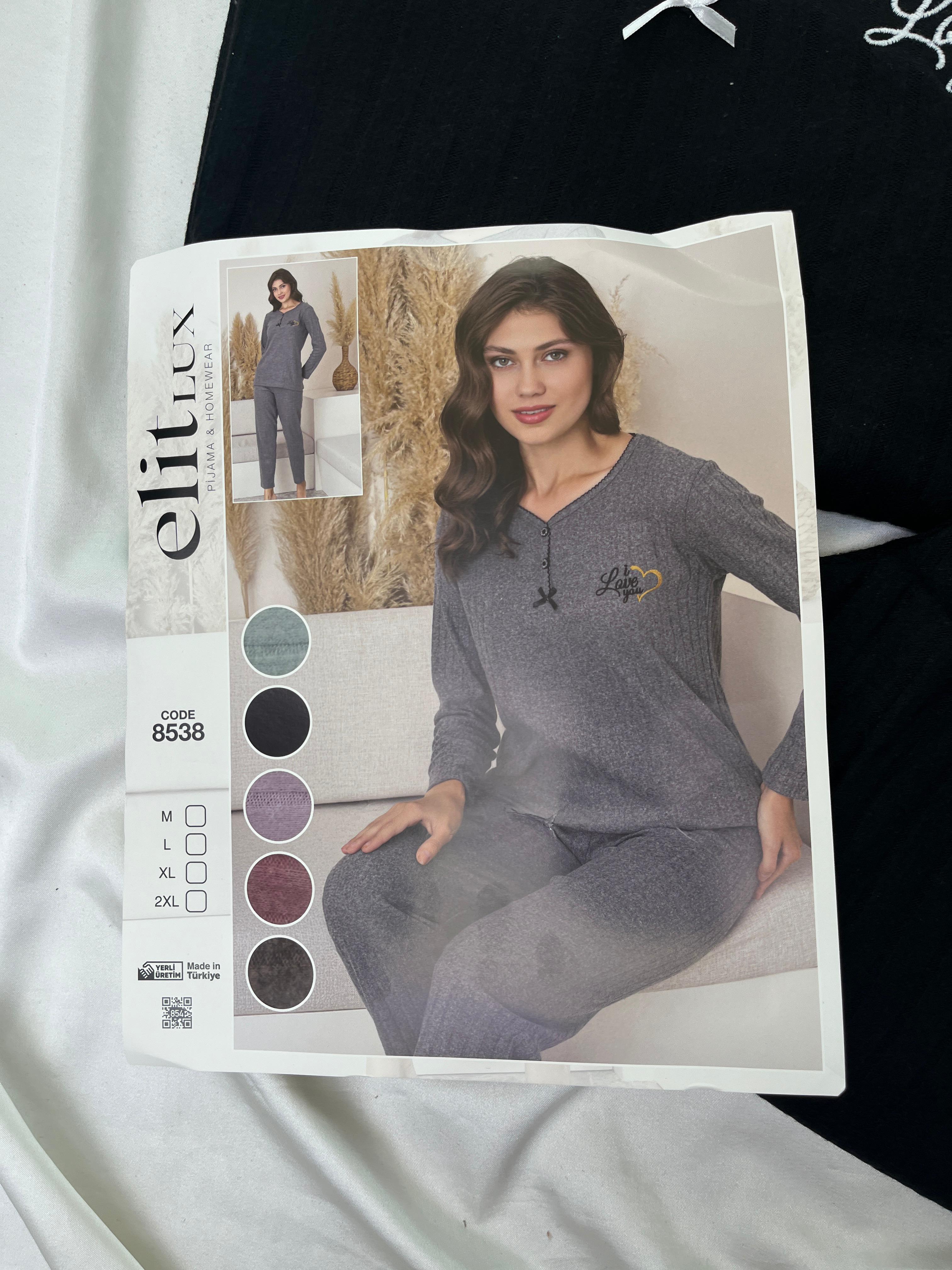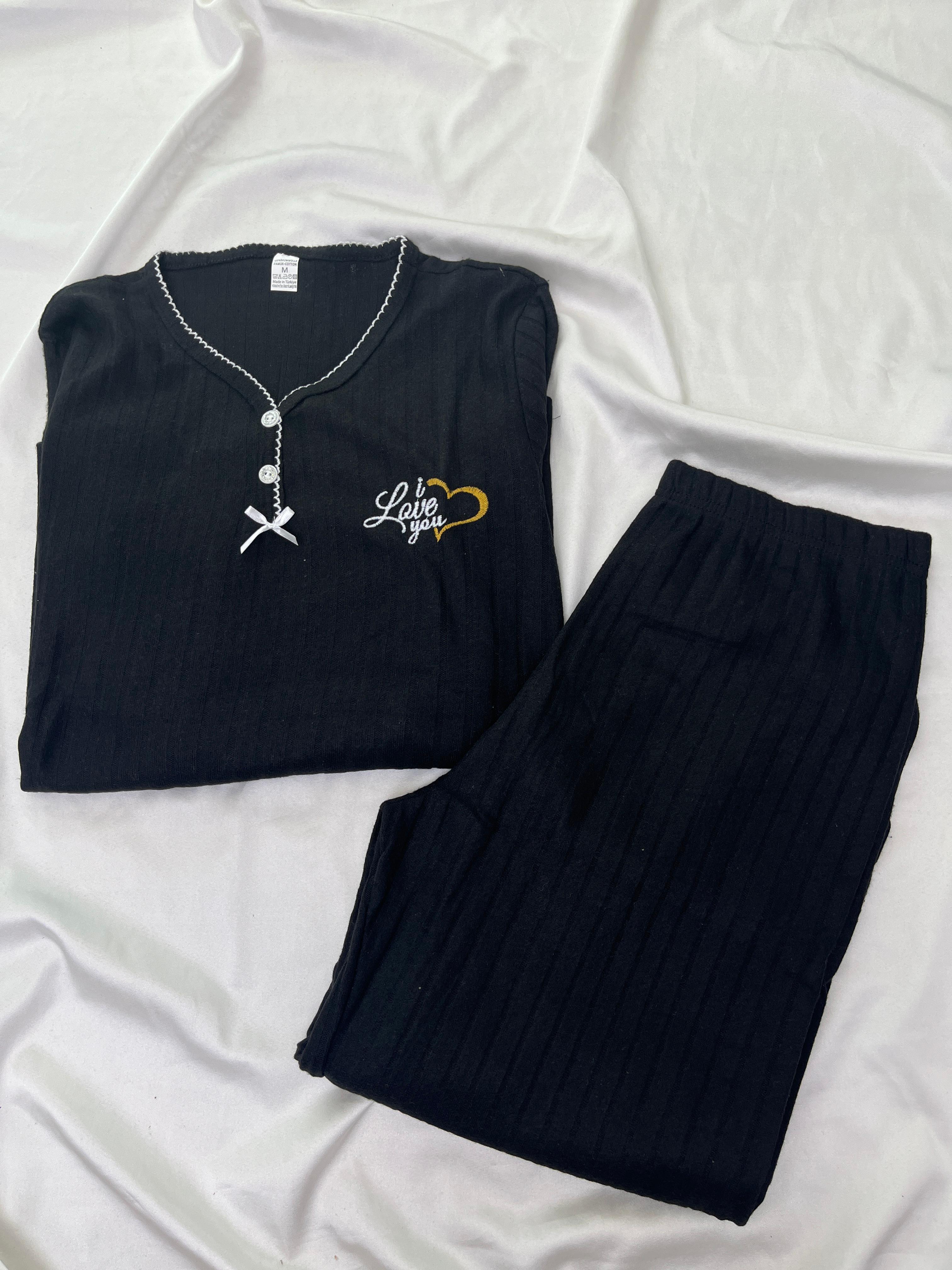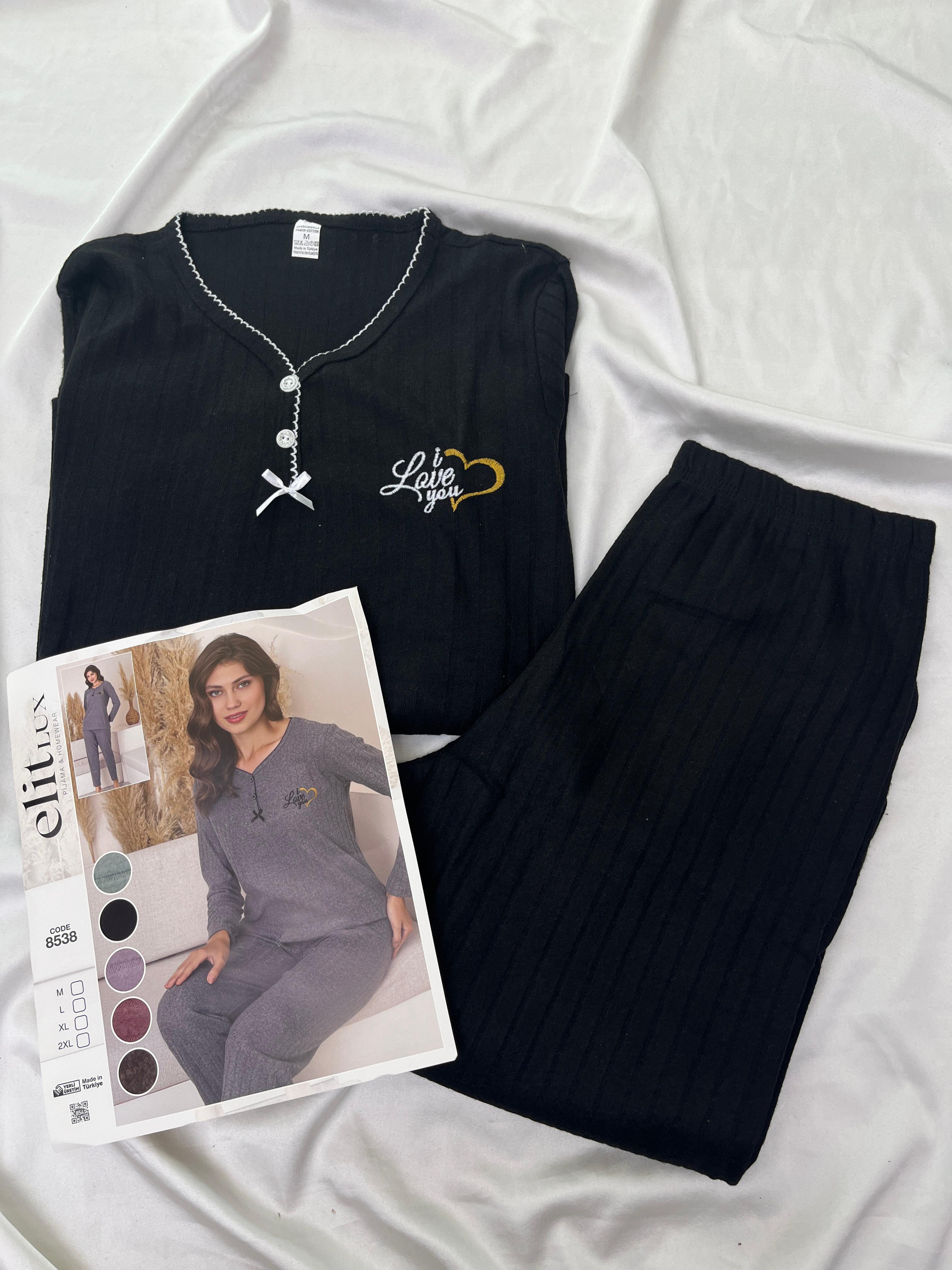 ç8538 -fitilli uzun kollu pijama takımı - siyah (ç8538)