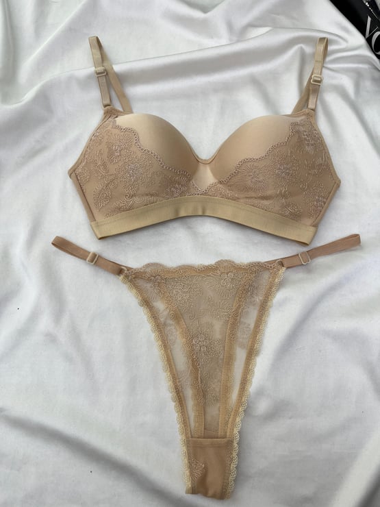 Ç8614 - DESTEKSİZ DANTEL DETAYLI SÜTYEN TAKIMI - TEN (Ç8614)