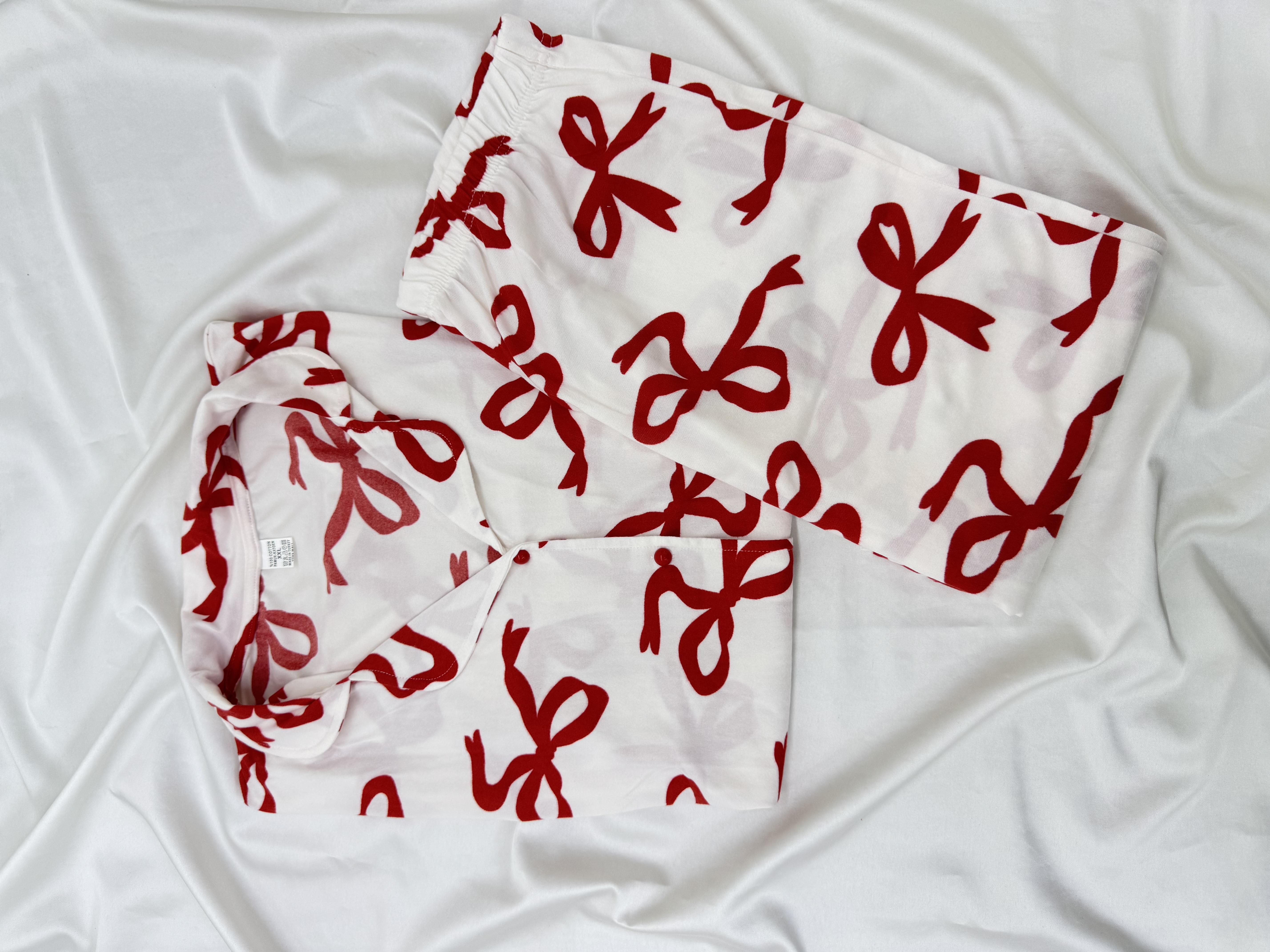 ç8657-büyük beden gömlek yaka fiyonklu pijama takımı-beyaz (ç8667)